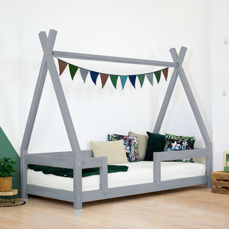 Benlemi® Children's house bed with firm bed guard NAKANA 200x90 Grey