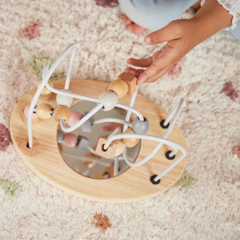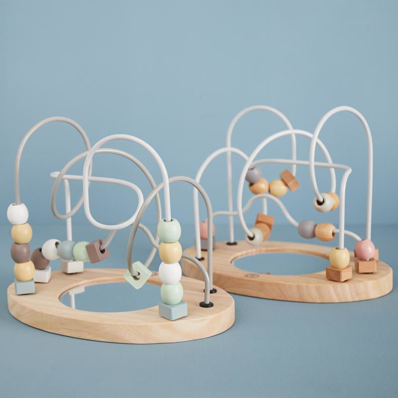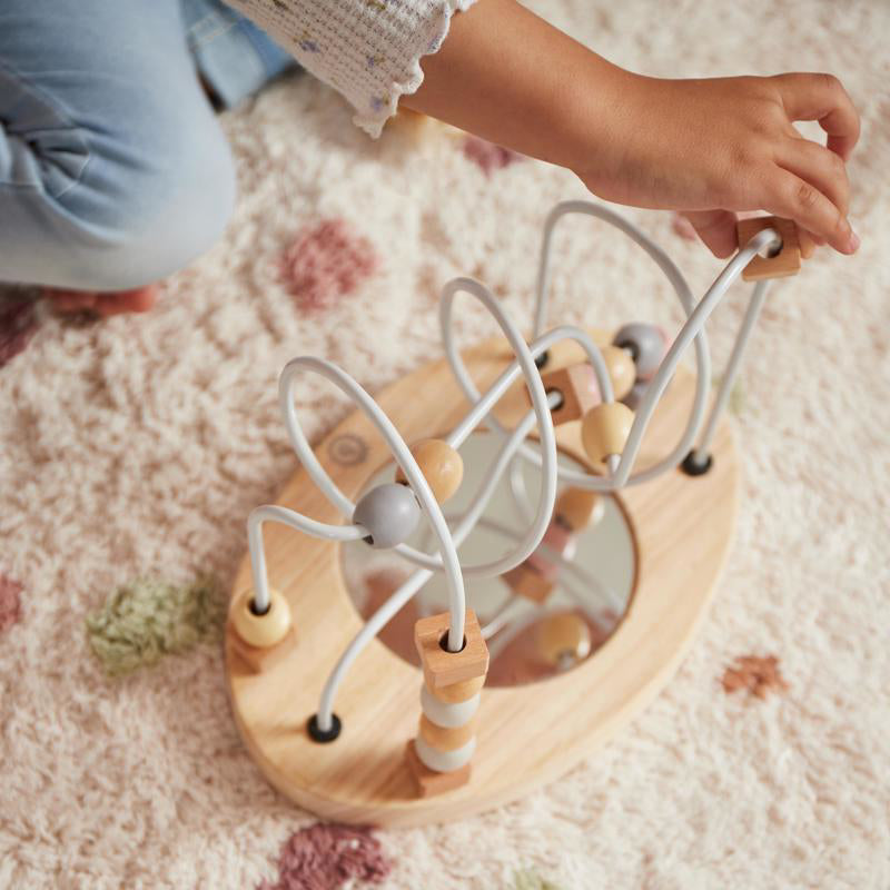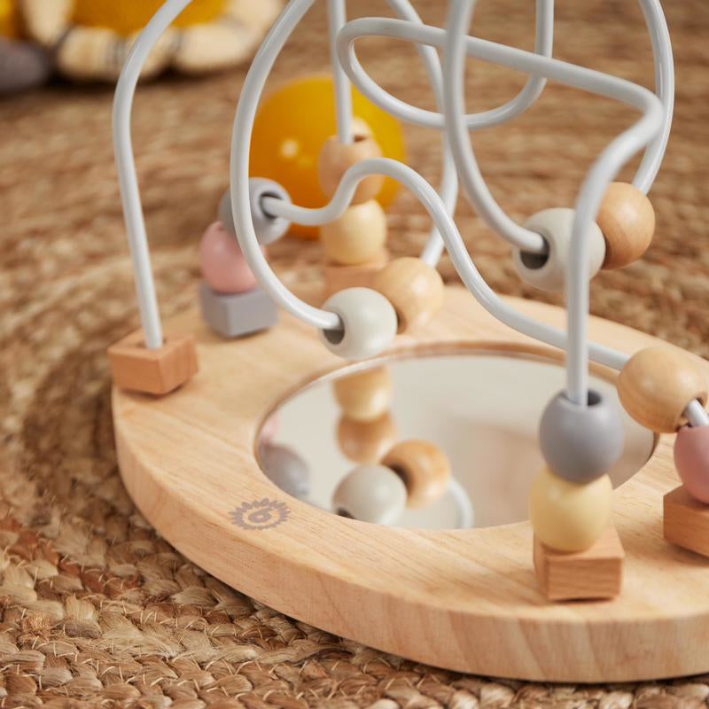 The Bieco activity toy provides hours of engaging play for curious toddlers! Various shapes and bright colors stimulate sensory development, while pushing wooden beads along metal wires enhances concentration and supports fine motor skills.