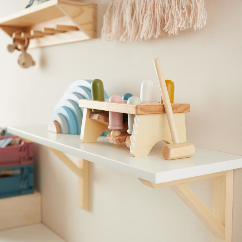 A perfect toy for building skills and having fun – the wooden hammer bench is a toddler favorite!