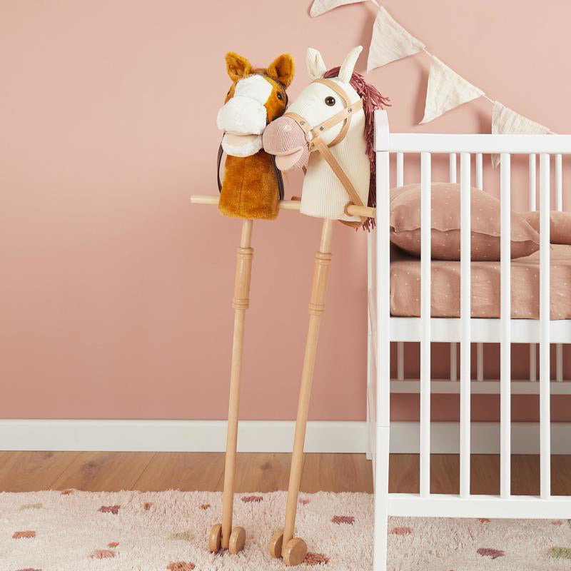 Yeehaw! HOP HOP! The stick horse invites kids to exciting pretend play and movement. With a soft fabric head and a solid wooden stick, it’s a perfect choice for children from 2 years old who love riding through the nursery, preschool, or the garden. The stick horse encourages physical activity and offers hours of creative fun.