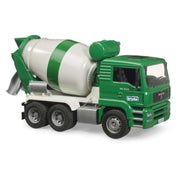 The new MAN TGA Truck Mixer by BRUDER combines realism and functionality for endless play possibilities. The tilting cab provides a clear view of the engine block, and the modernized mixer drum can be rotated using a hand crank on the water tank. The drum features a spiral conveyor for mixing and can be emptied by reversing the direction of rotation, just like the real thing.