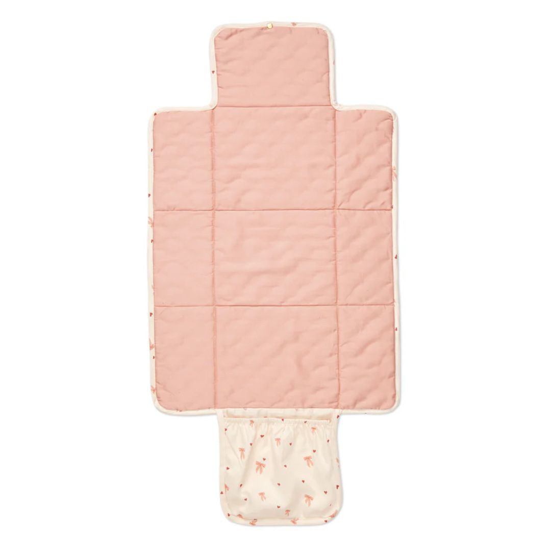 A cute and practical changing mat with a beautiful wave quilt pattern - the mat is perfect for changing situations on the go. The mat is easily folded with one hand to a handy small size, that fits into the nursery/diaper bag. It has a practical pocket inside that fits a diaper and a muslin. The mat is coated on the outside to make it dirt and water repellent.