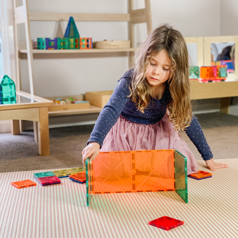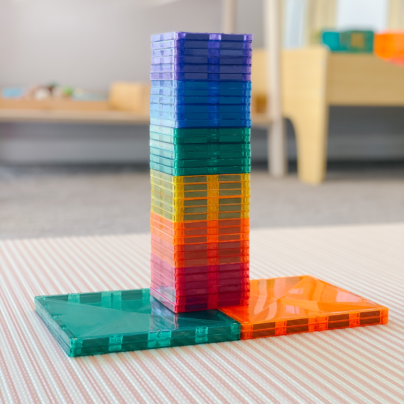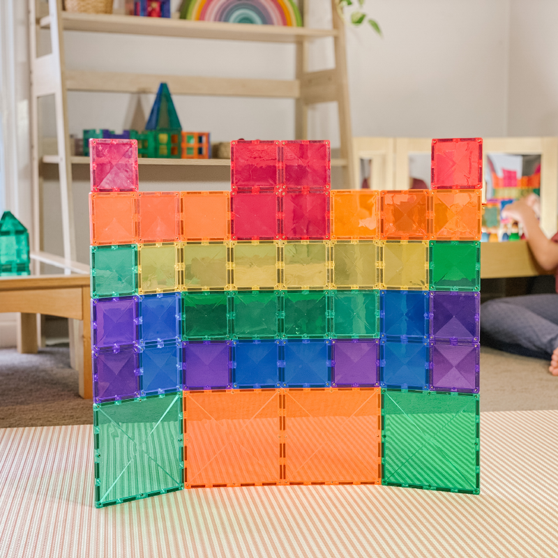 Our Expansion Pack works as either a standalone starter set (ideal for gaining confidence and familiarity with magnetic tile play), or to complement our other packs and help create taller towers and walls, larger rockets, bigger houses and carparks, longer roads, expansive ball runs, patterns…and whatever else you are inspired to create.