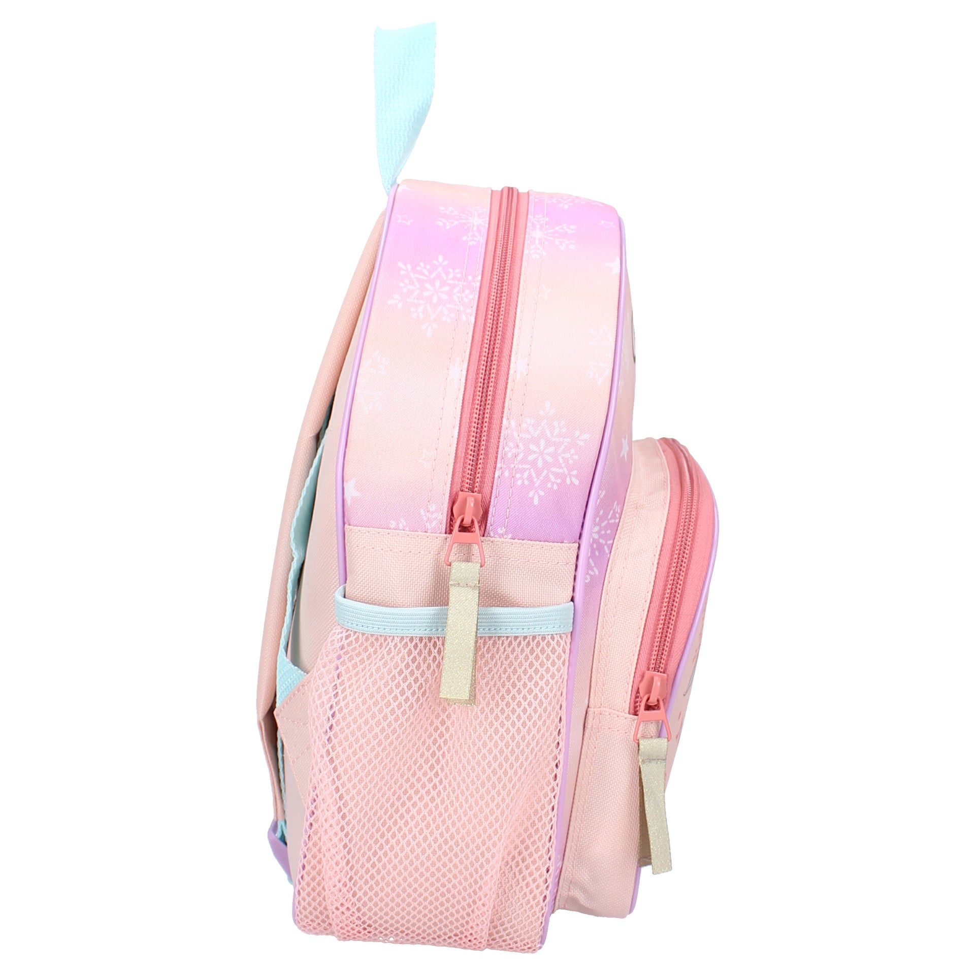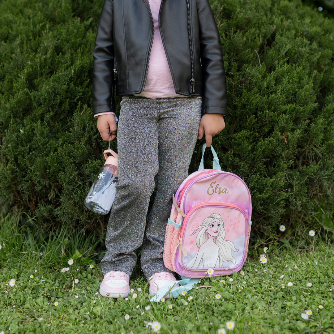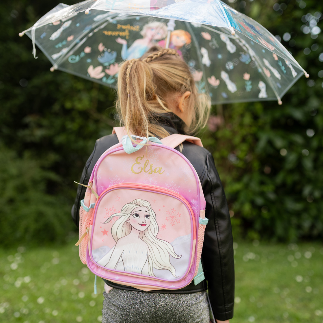 This backpack from the It's All Magic collection is ideal for all Frozen fans! The backpack is pink in color with a large print of Elsa on the front. The main compartment offers sufficient space and closes with a zipper. The front pocket also closes with a zipper. The bag is finished with pink and blue details. There are pockets on the sides, handy for a water bottle. Furthermore, the backpack has adjustable shoulder straps so that the bag can be adjusted to fit everyone. There is a handy loop at the top of the backpack so that the bag can also be carried by hand.