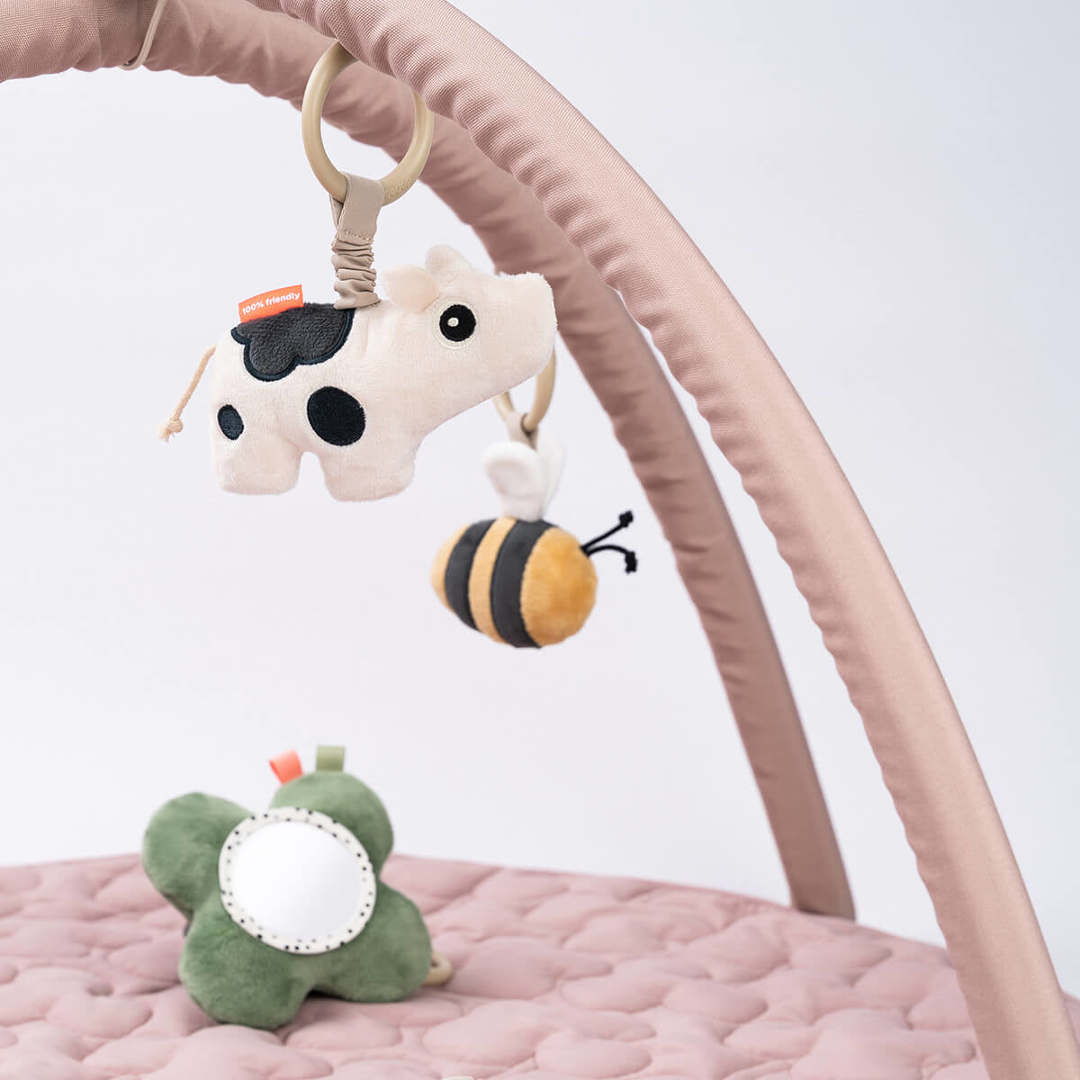The Play Gym offers a perfect space for sensory exploration and motor skill development for your baby. The soft, quilted mat in a sandy tone provides a cozy and safe area for play, while the four hanging toys offer a rich sensory experience.