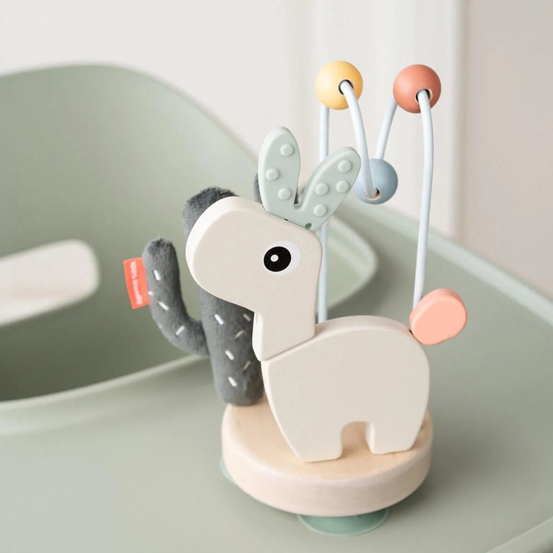 It features a mini bead maze, crinkle elements, and flexible parts that engage your baby’s senses. The strong Stick&Stay suction base keeps it stable – ideal for use on a high chair while waiting for meals.
