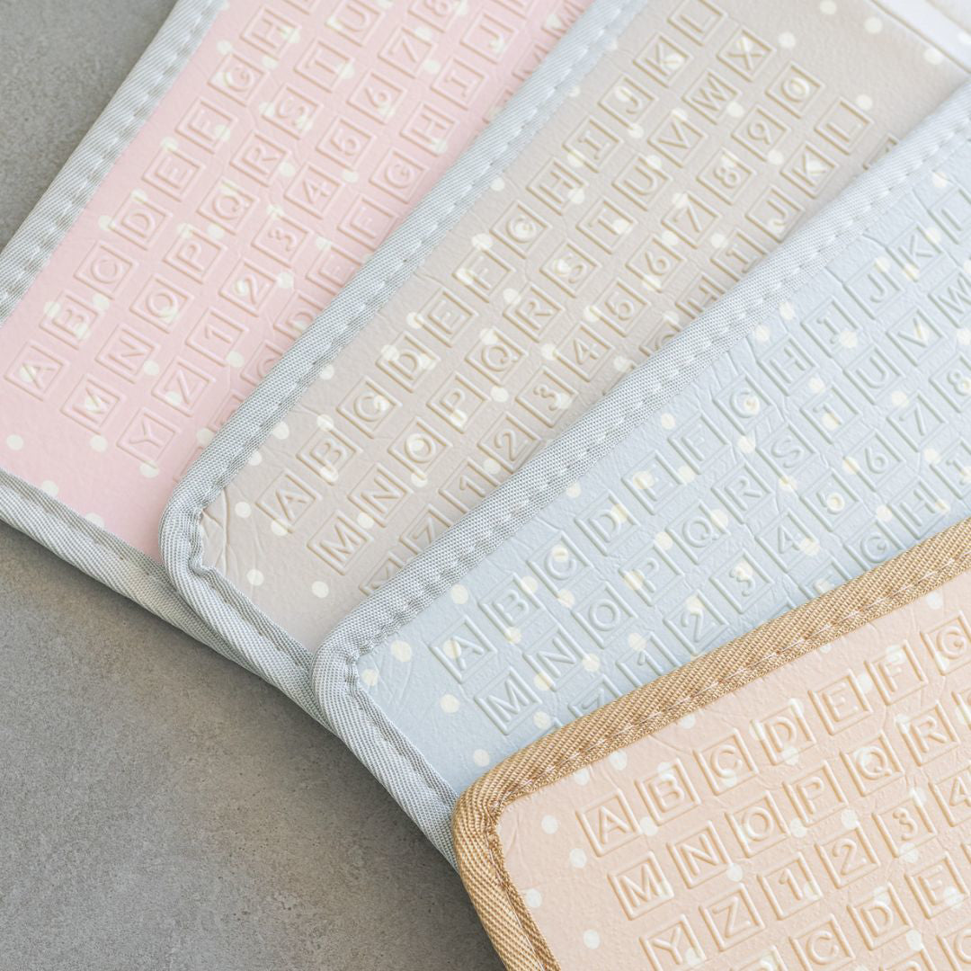 This mat is double-sided – one side features gentle polka dots with a textured surface of letters and numbers to encourage early learning and tactile exploration. The reverse side shows a street pattern with slightly raised squares that improve grip and help prevent slipping during play.