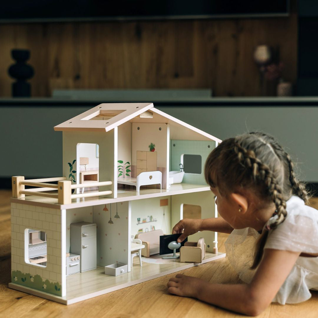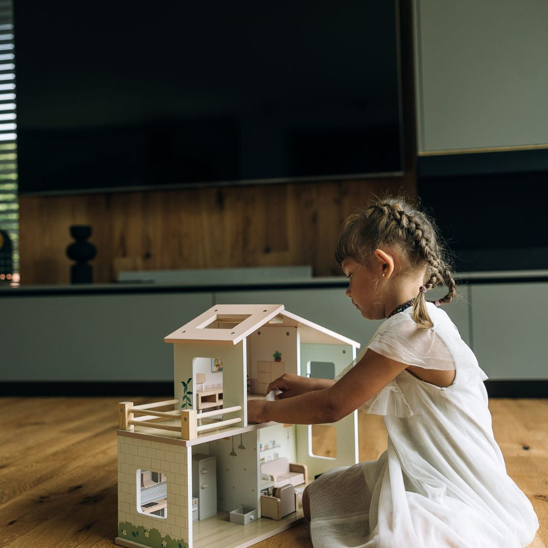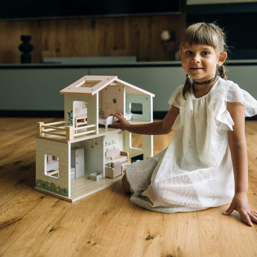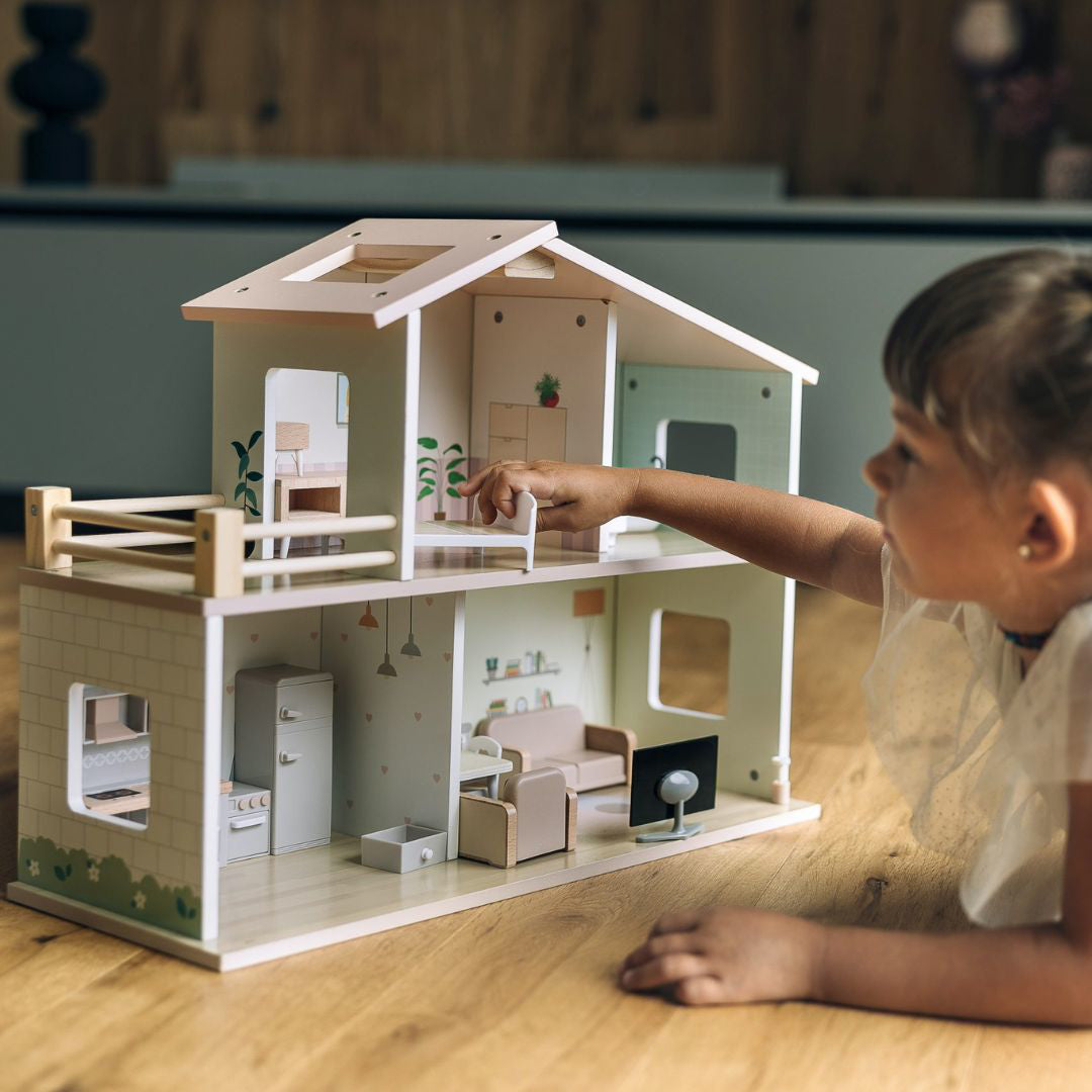 Create a magical world for your little ones with the wooden Ella dollhouse! This charming dollhouse features a modern design and carefully crafted furniture, providing hours of imaginative play. With three floors and doll-sized rooms, children can explore, create scenarios, and boost their creativity. Made from high-quality materials, this dollhouse ensures durability and safe play.