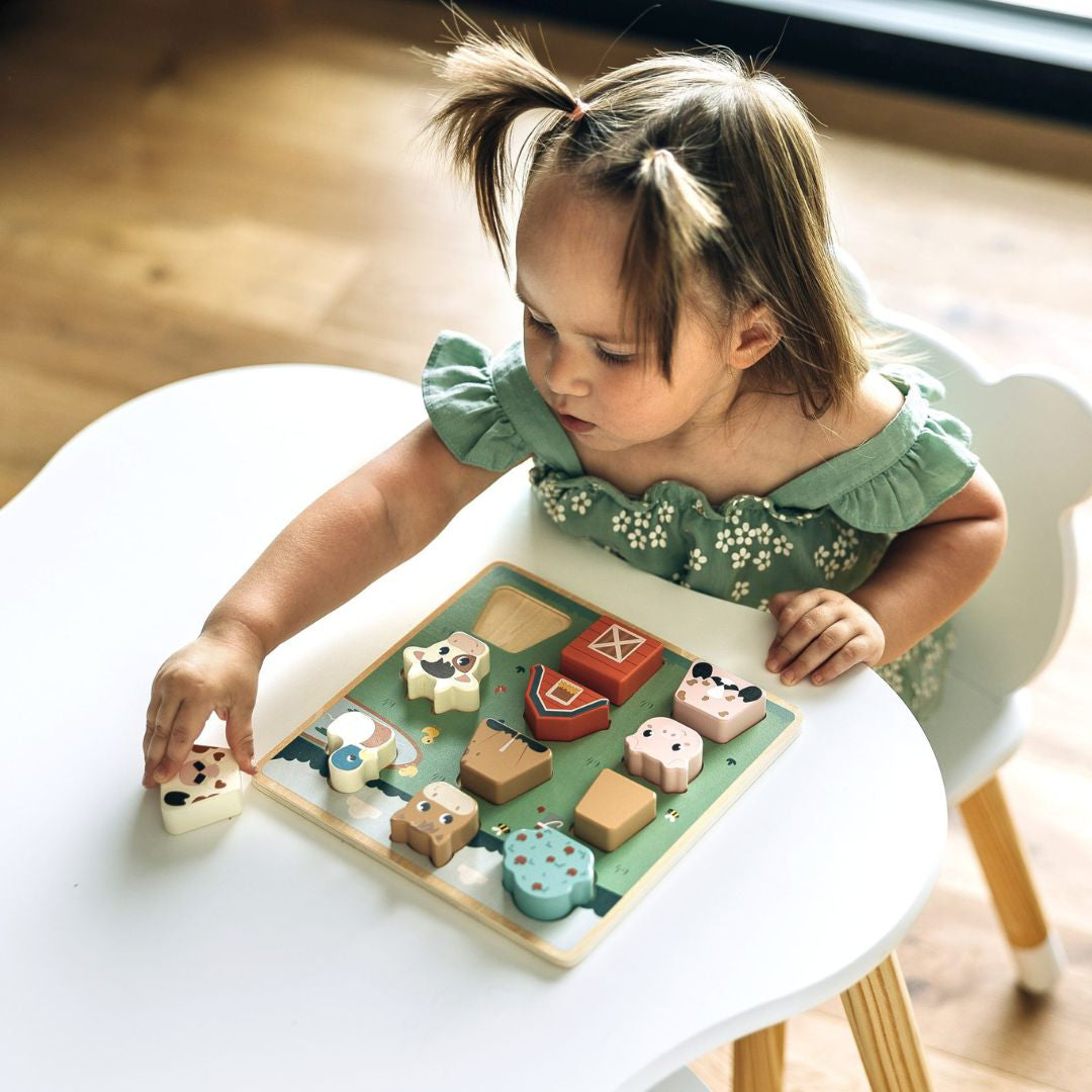 A perfect choice for fun and educational playtime! The Wooden Puzzle is designed to help children develop fine motor skills, logical thinking, and shape recognition. The colorful motifs and high-quality wooden pieces capture a child's attention and ensure long-lasting entertainment.