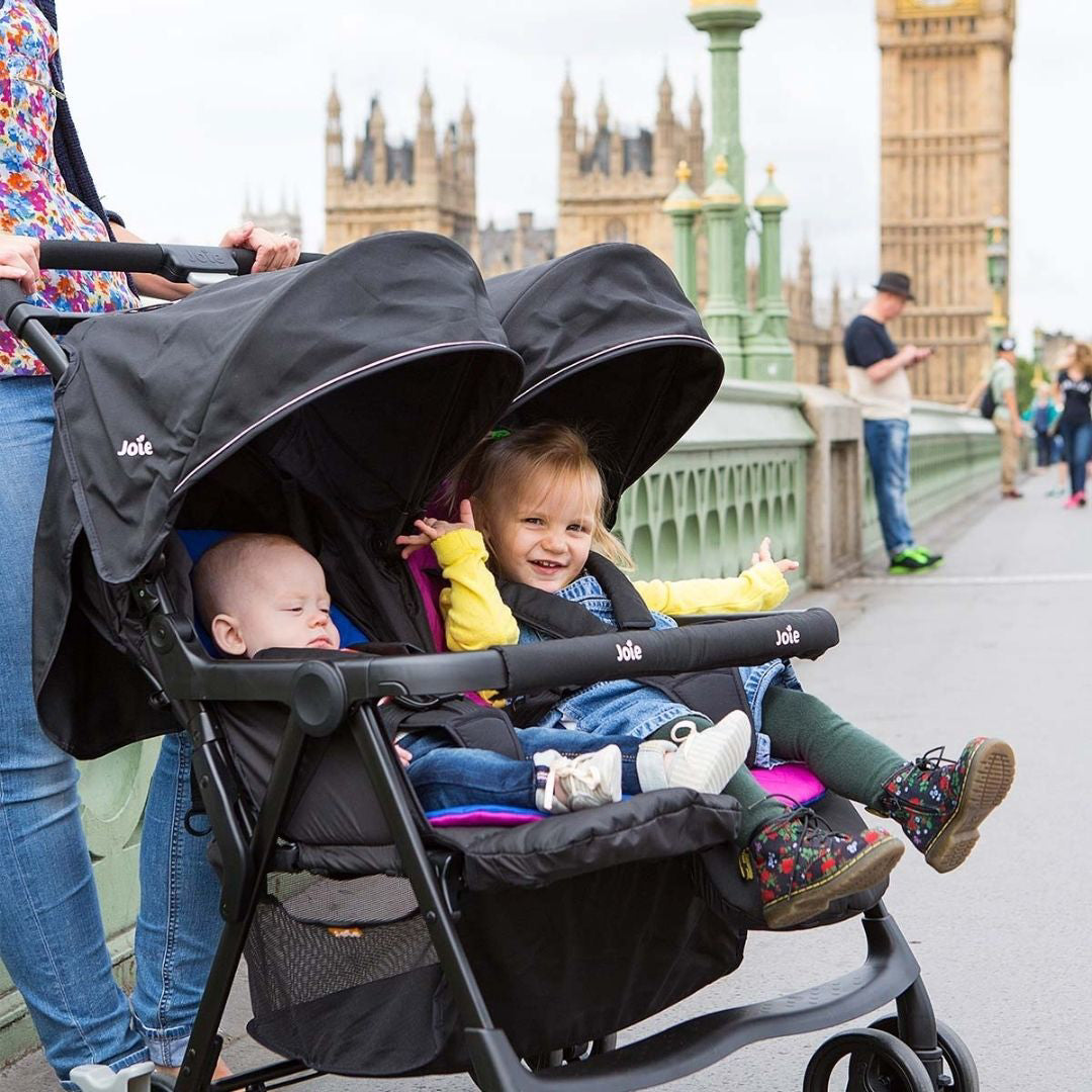 One of the lightest weight, fully featured double strollers available at less than 12kg.
