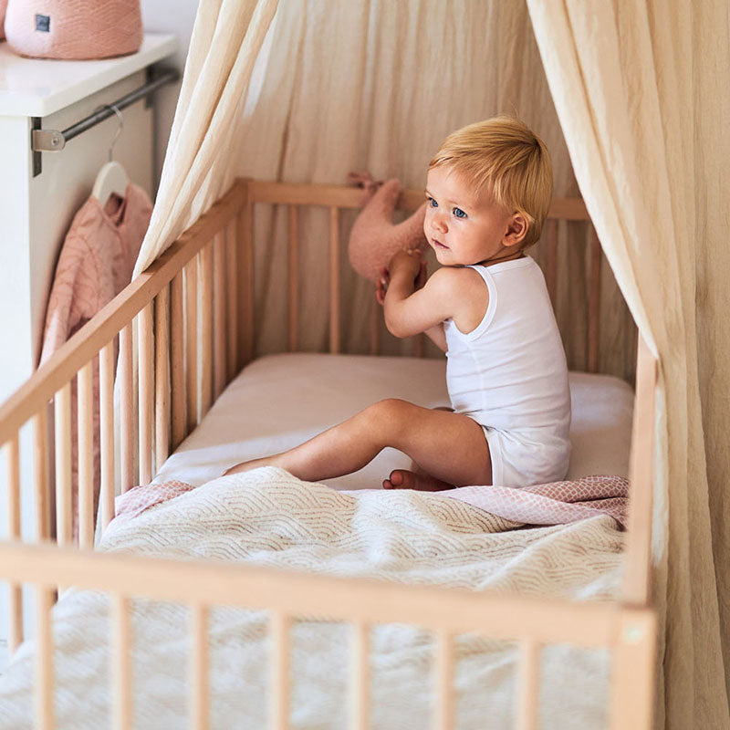 Easily protect your baby's mattress with this fitted sheet. The fitted sheet is nice and stretchy and soft. For the best protection you can use it in combination with a flannel fitted sheet. The color of this fitted sheet can be matched well with the blankets from the Basic knit and the Bliss knit theme from Jollein.