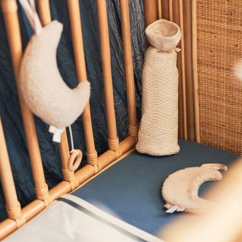 Just pull the string and the moon will sing a lullaby. A little music can have a calming effect on a baby. The moon has a drawstring with a wooden ring and at the top there is a string to hang the music hanger in such a way that your baby can see and hear the moon but cannot grab it. The song 'you are my sunshine' lasts about 60 seconds at a time; long enough to get your baby to sleep. If you repeat it every day, it becomes a sleeping ritual and therefore a recognition to go to sleep.