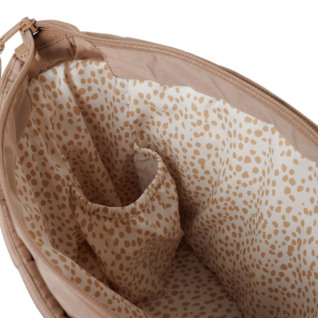 On the inside, the organizer has our characteristic 'dotted' print, which is not only fun to look at, but also practical if you want to find items quickly. Thanks to two storage compartments with elastic at the top you can safely store little bottles and other small items. The two pouch compartments on the outside with the same 'dotted' inside add extra storage space.