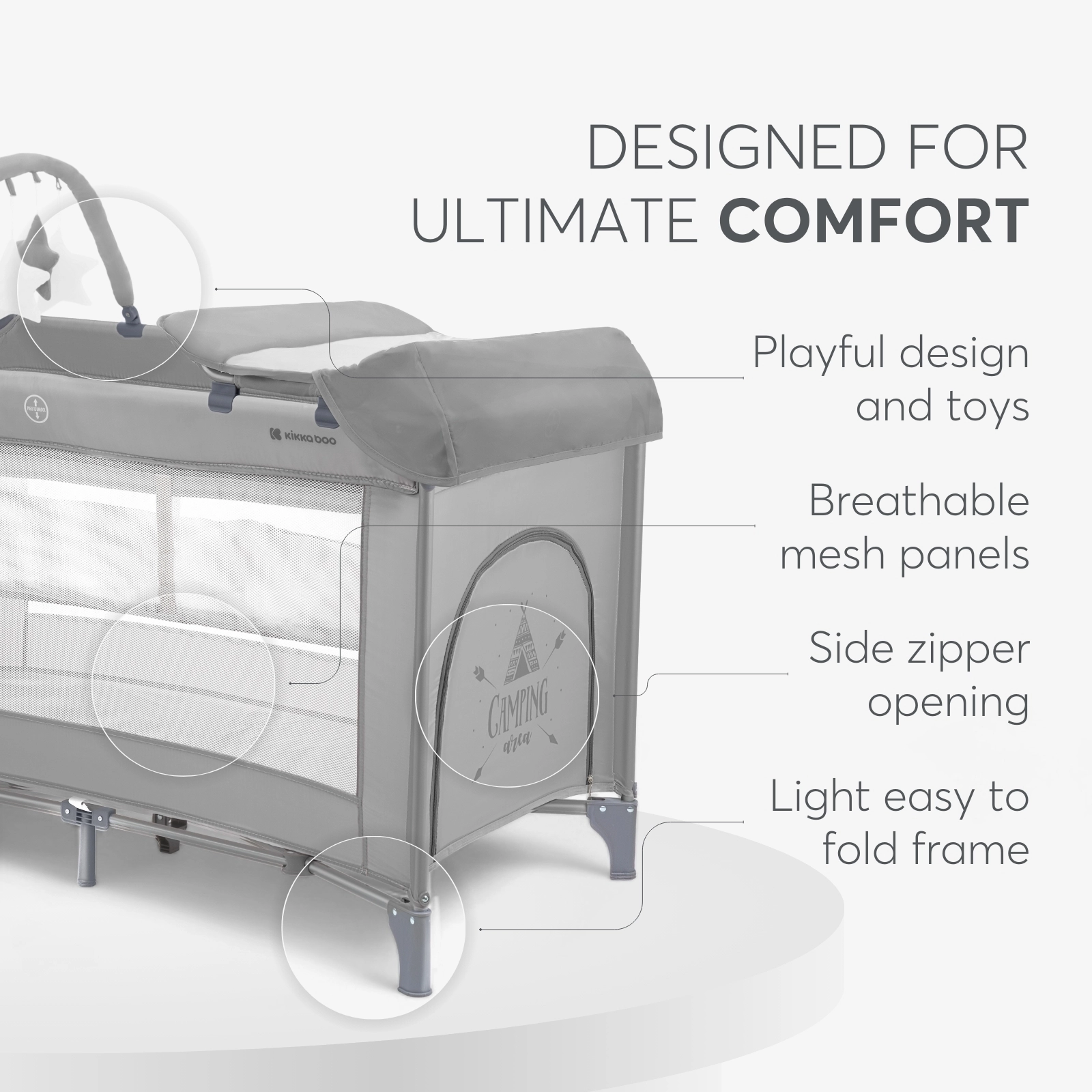 KikkaBoo® Baby cot 2 levels 125x65 So Gifted PLUS Grey