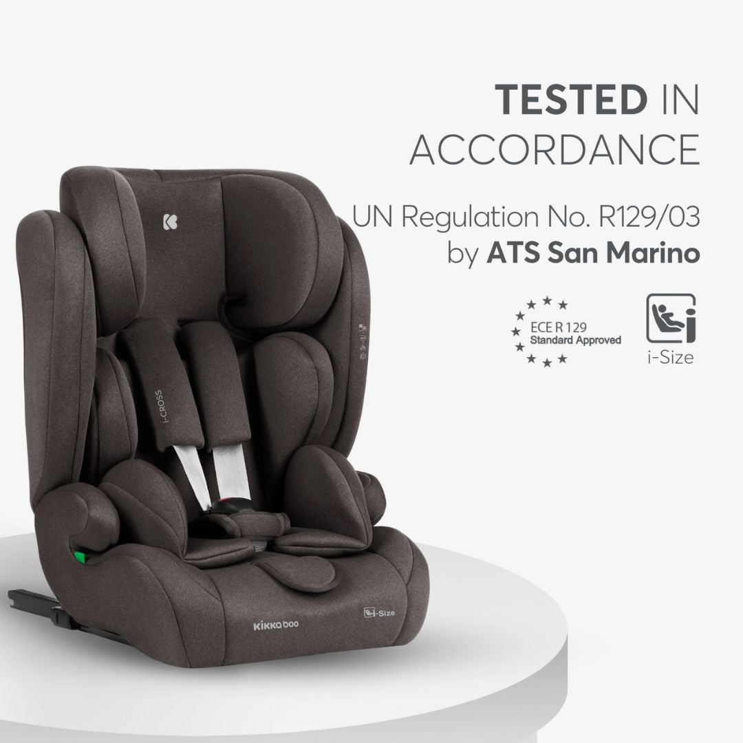 The i-Cross i-SIZE car seat has been tested in compliance with United Nations Regulation No. R129/03 by ATS San Marino. This ensures top-notch protection and compliance with the latest European safety standards.