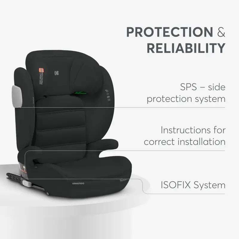 The ISOFIX system allows for quick and secure installation, while the adjustable headrest with 12 positions ensures perfect adaptability to your child’s growth. Memory foam padding in the headrest provides additional comfort and support, especially on longer journeys. Additionally, the car seat features an SPS side protection system, offering enhanced safety in case of a side collision.