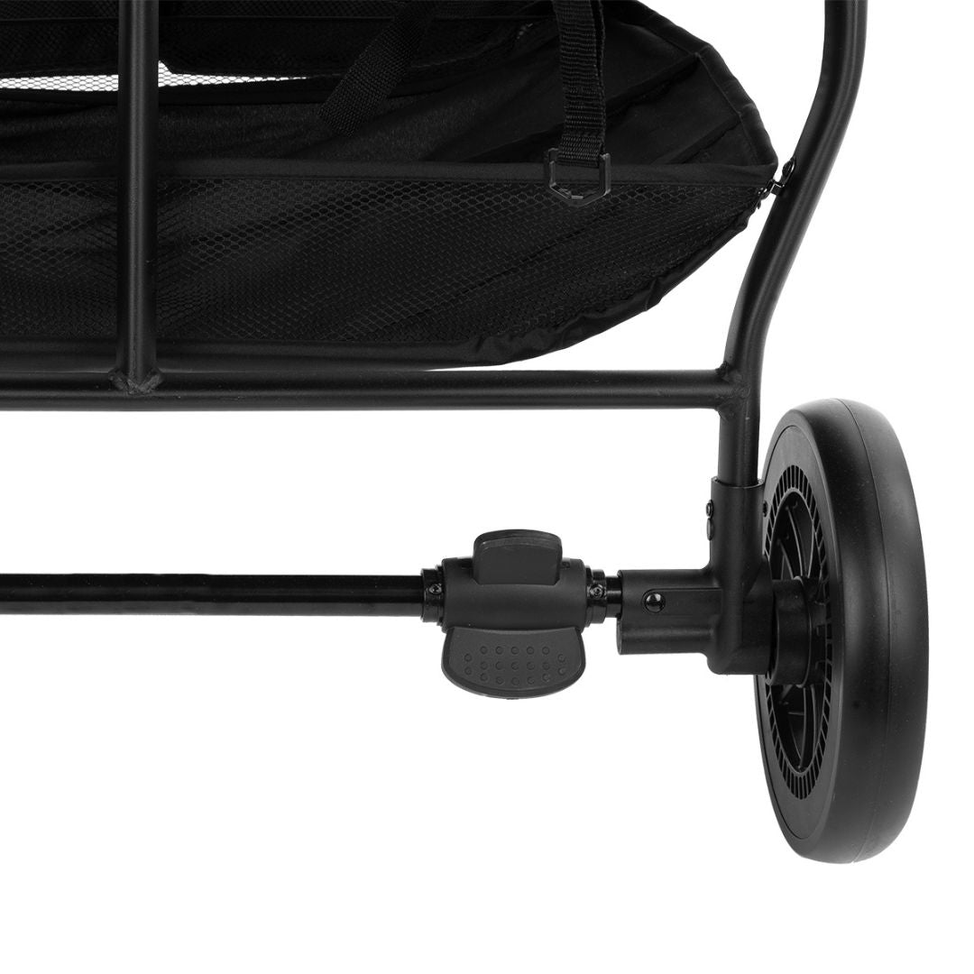 - Wheels: 360-degree rotating front wheels with a locking mechanism and large all-terrain wheels.