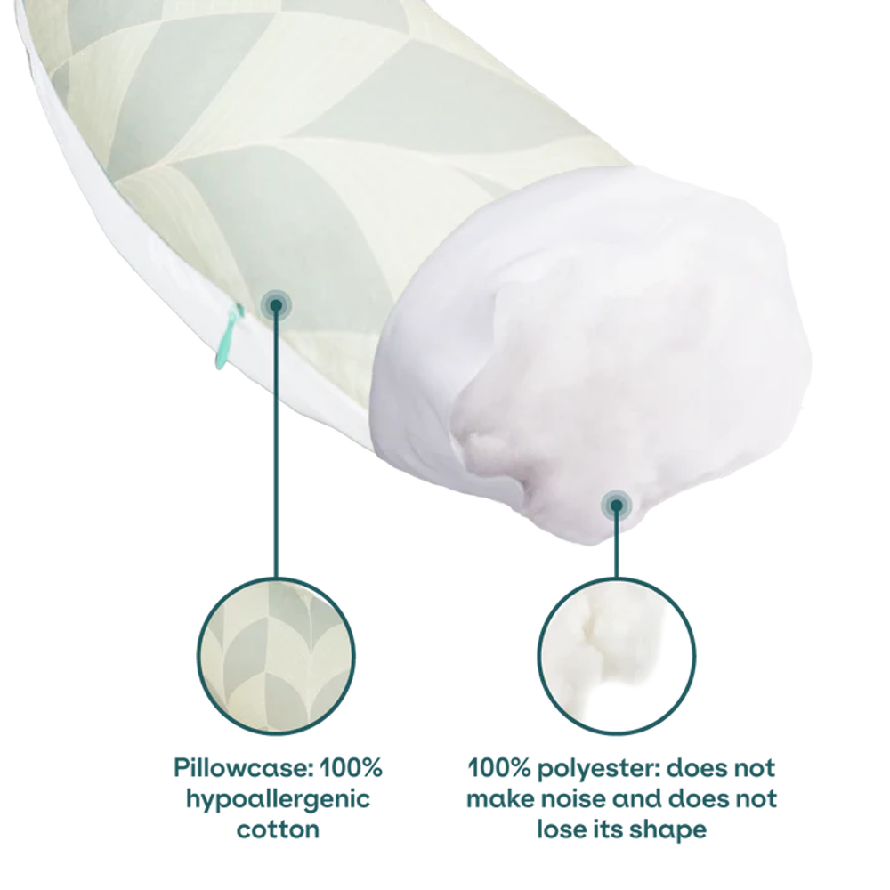 - Practical tie strings at the ends to transform the pillow into a snug U-shaped baby nest