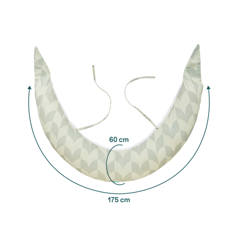 Filled with synthetic silicone fibers and covered with a removable 100% hypoallergenic cotton cover, this pillow adapts to your needs while being gentle on sensitive skin. The convenient tie straps at the ends allow you to transform it into a baby nest in seconds.