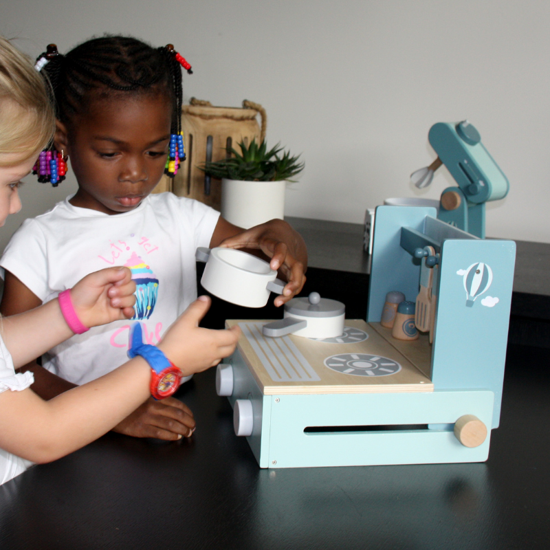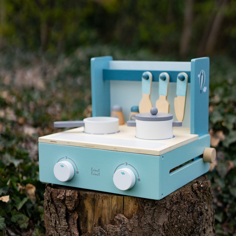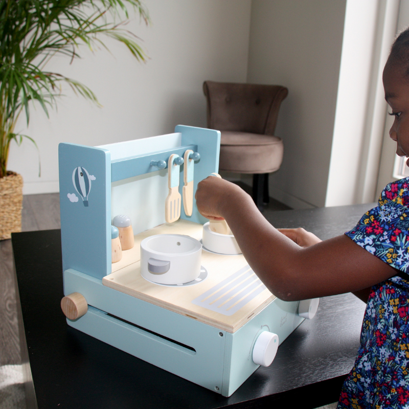 Compact cooktop made from high-quality FSC-certified wood and painted with child-safe water-based paint. Your child can take it anywhere and prepare imaginative meals wherever they like.
