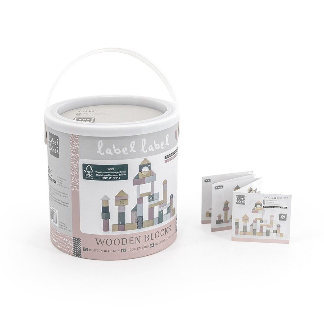 Label Label® wooden blocks are made from high-quality FSC-certified beech wood. The set includes a combination of natural and child-friendly water-based painted blocks, ensuring safe and enjoyable play for little ones.