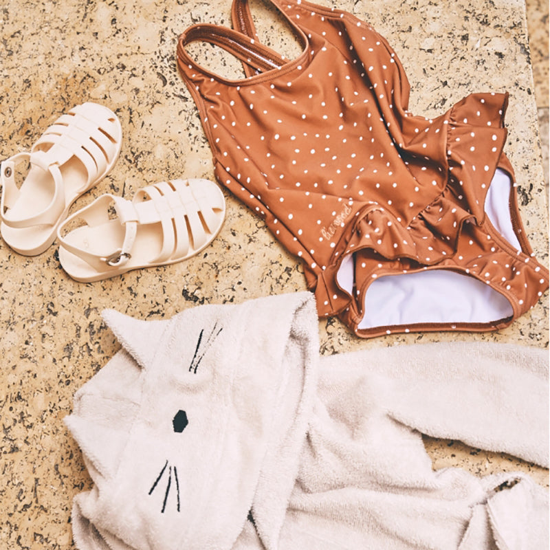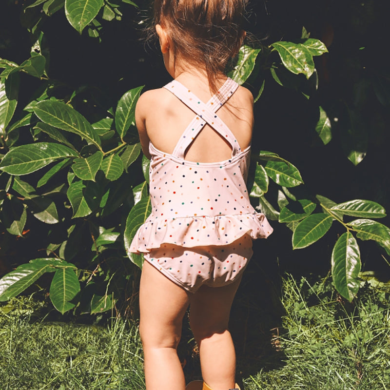 Let your children jump into the waves in playful ruffles and cute summer prints.