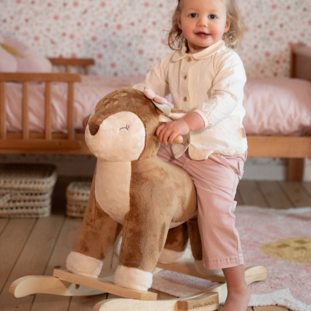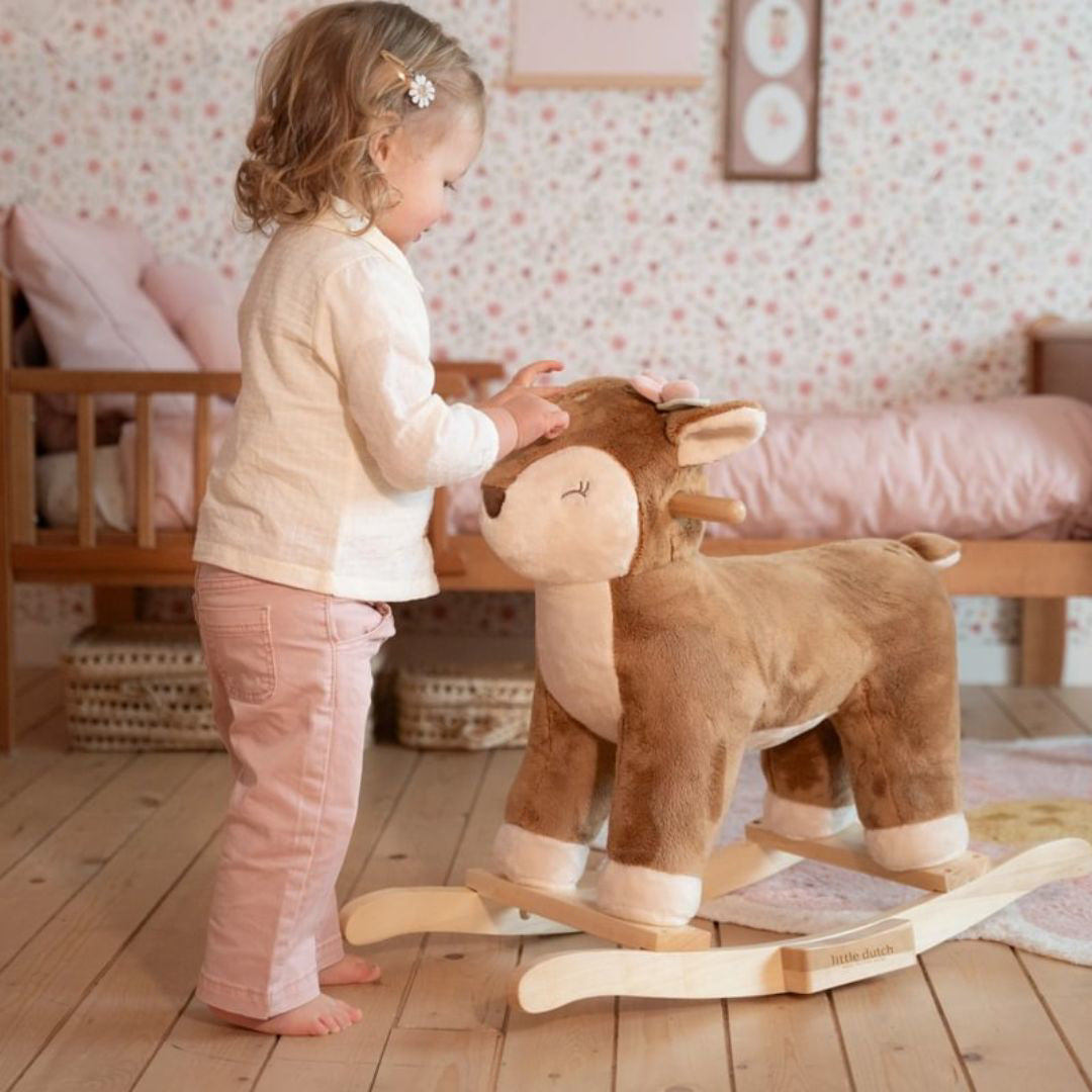 Your little one will love the new rocking deer from Little Dutch! With its soft fur and friendly appearance, the deer invites children to sit down and enjoy gentle rocking. The sturdy wooden frame ensures stability and safety during play. This rocking deer is a perfect addition to any child's room.