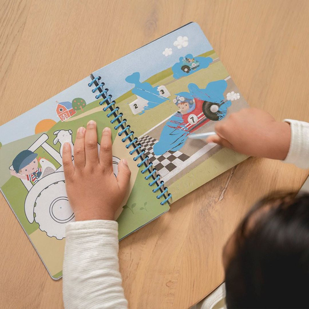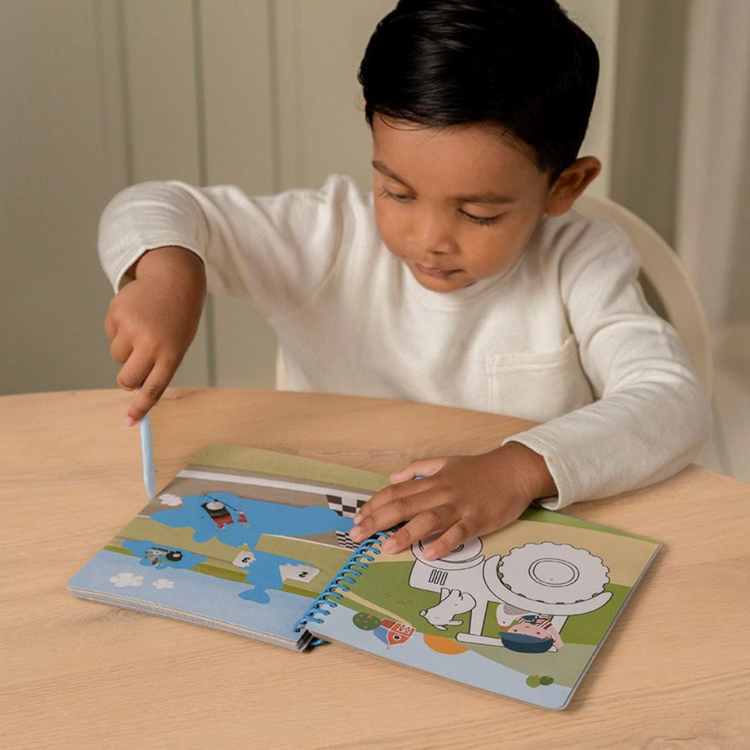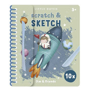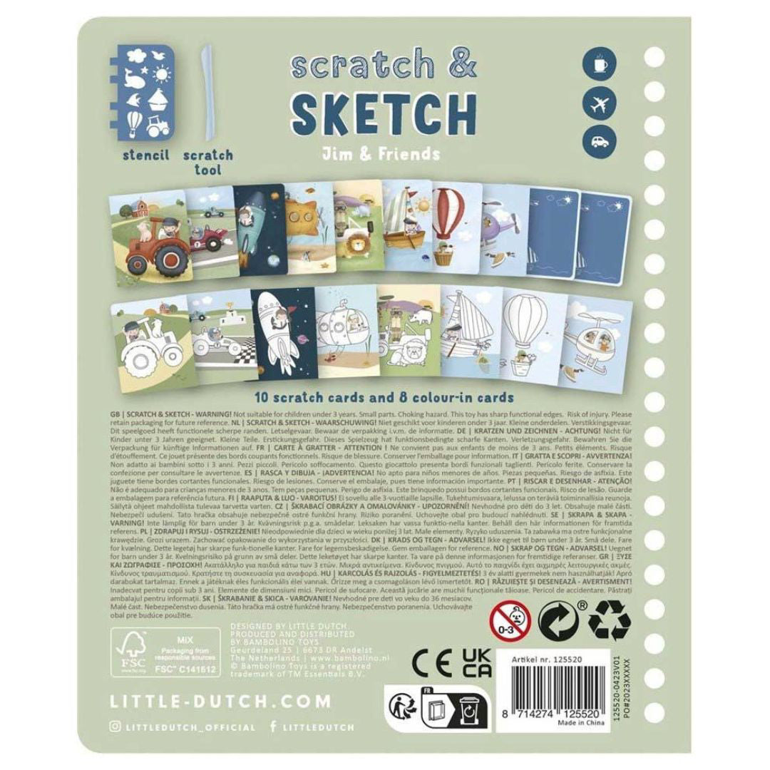 The scratch cards and colouring pages in Little Dutch's 'Jim & Friends' scratch and sketch book are a fun creative activity for budding artists. With the scratch pen, children can scratch on the scratch cards and the figures magically appear! Besides scratching, the most beautiful creations can be made on the colouring pages with the stencil. Go on an adventure with Jim on the farm, the track, in space, underwater, on safari, in the air and on water. The scratch and sketch set includes 10 scratch cards, 8 colouring pages, a stencil and a scratch pen.