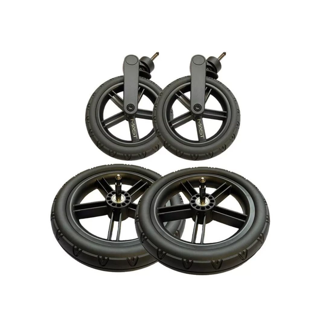 The wheels are made of polyurethane, combining the elasticity of rubber wheels with the strength and durability required for all-terrain use. Easy to install and maintain, they are the ideal choice for parents who value uncompromising quality and reliability every step of the way.