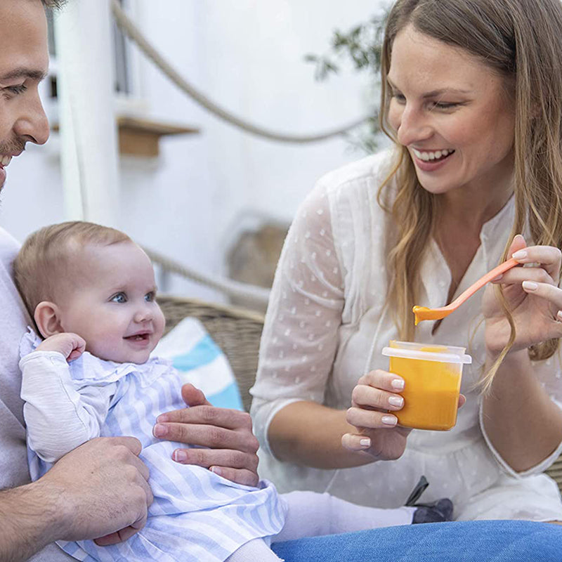 Set of 4 high-quality, graduated, airtight containers. Keep, heat, freeze and carry your baby’s first food and all kinds of solid food (snacks, lunches and desserts) and liquids (breast milk, soups, juices, etc.)