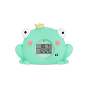 The frog thermometer displays real-time water and air temperature and notifies parents if conditions become too hot or too cold. This ensures your baby stays comfortable and happy during bath time.