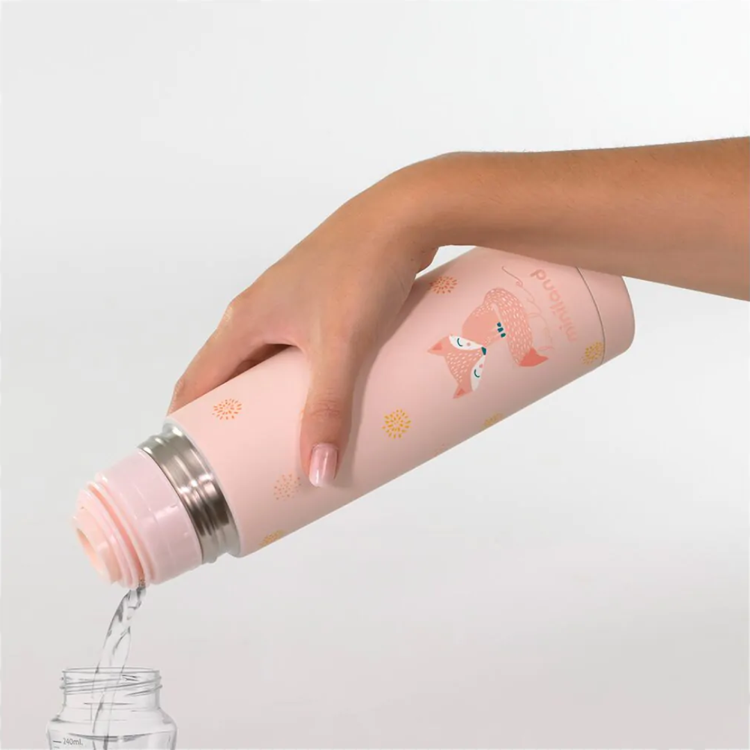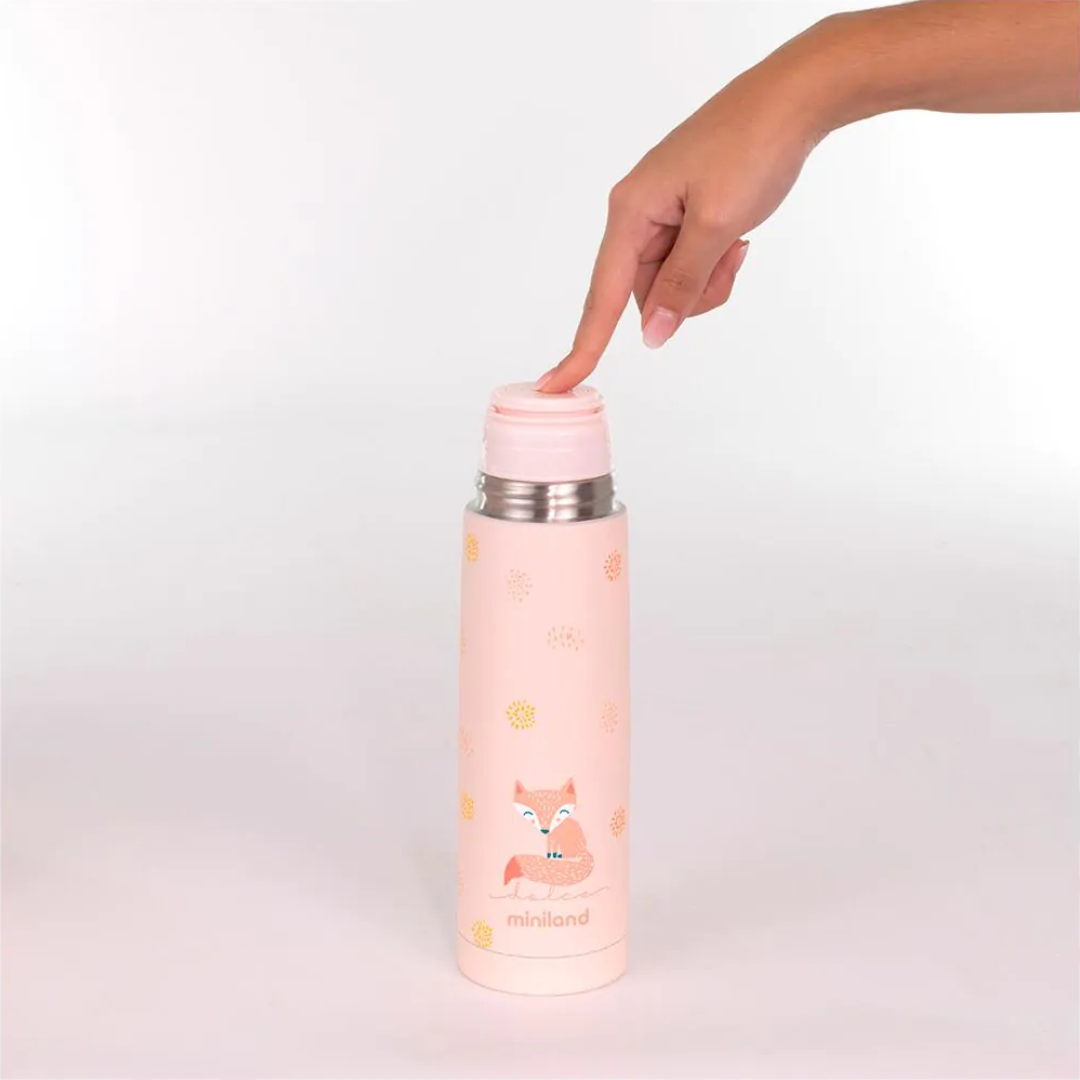 Food thermos has the perfect size to take it anywhere. The neoprene bag is fitted with a velcro seal handle which allows it to be conveniently hung on the pram. In addition, it insulates from atmospheric temperature changes, better maintaining the temperature of hot or cold foods for more than 12 hours. Ensures greater safety and hygiene when transporting food thanks to its sealing with a double-cap seal.