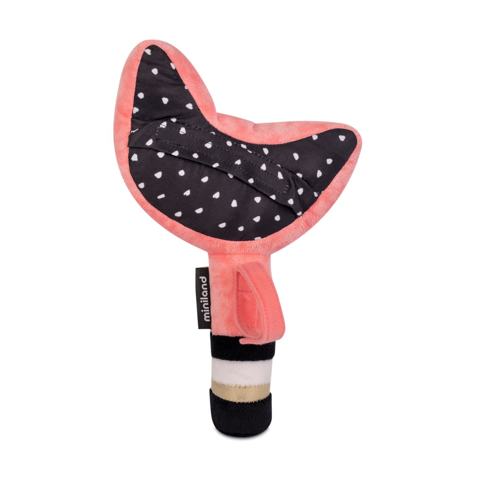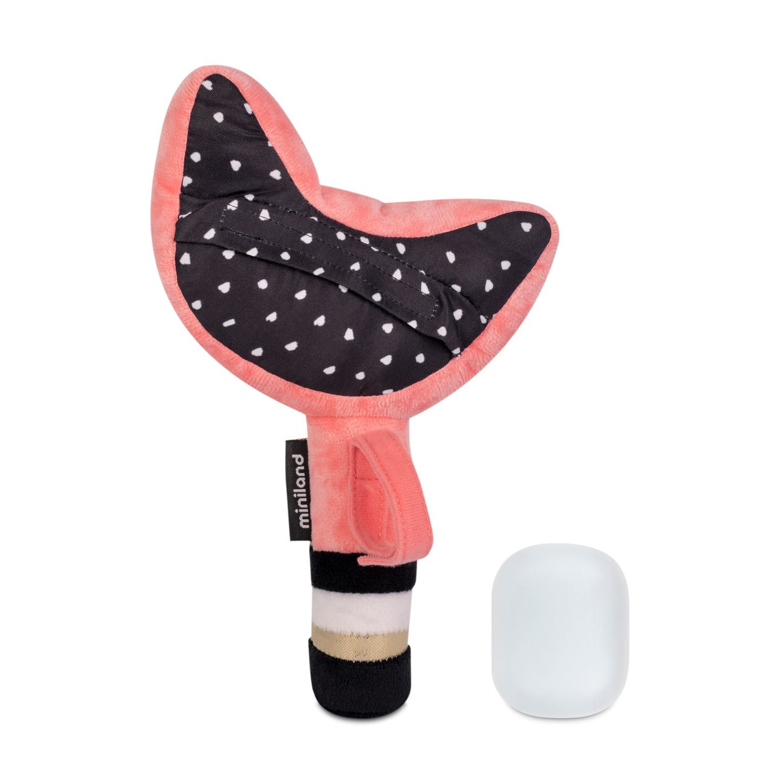 It includes a practical contact sealing tape at the rear to attach it to the stroller, cot or any other element so it can always be close by and visible to the baby.
