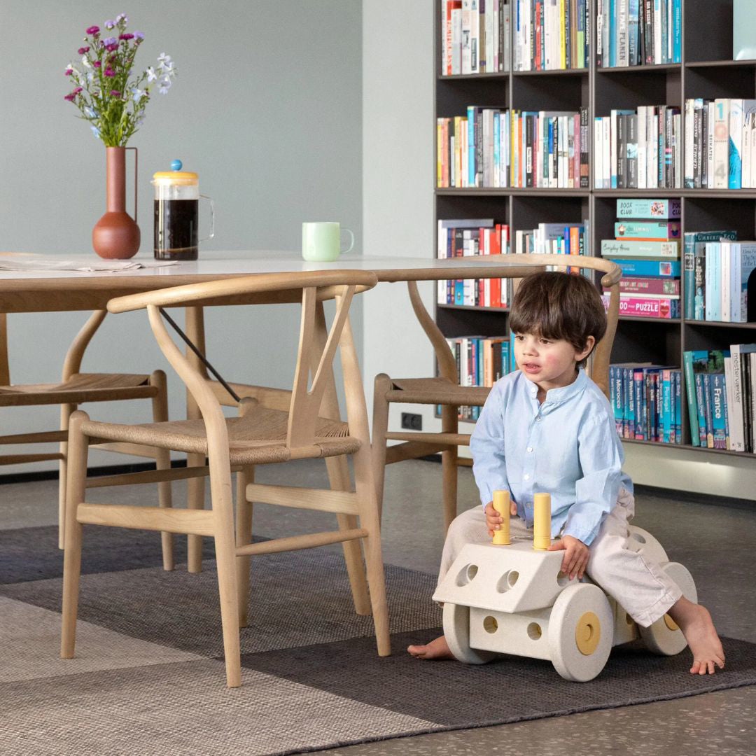 The blocks are made of 100% recycled EPP foam, resistant to damage, dirt, and wear. Connectors and wheels are made from 100% recycled, non-toxic ABS plastic safe for food contact.