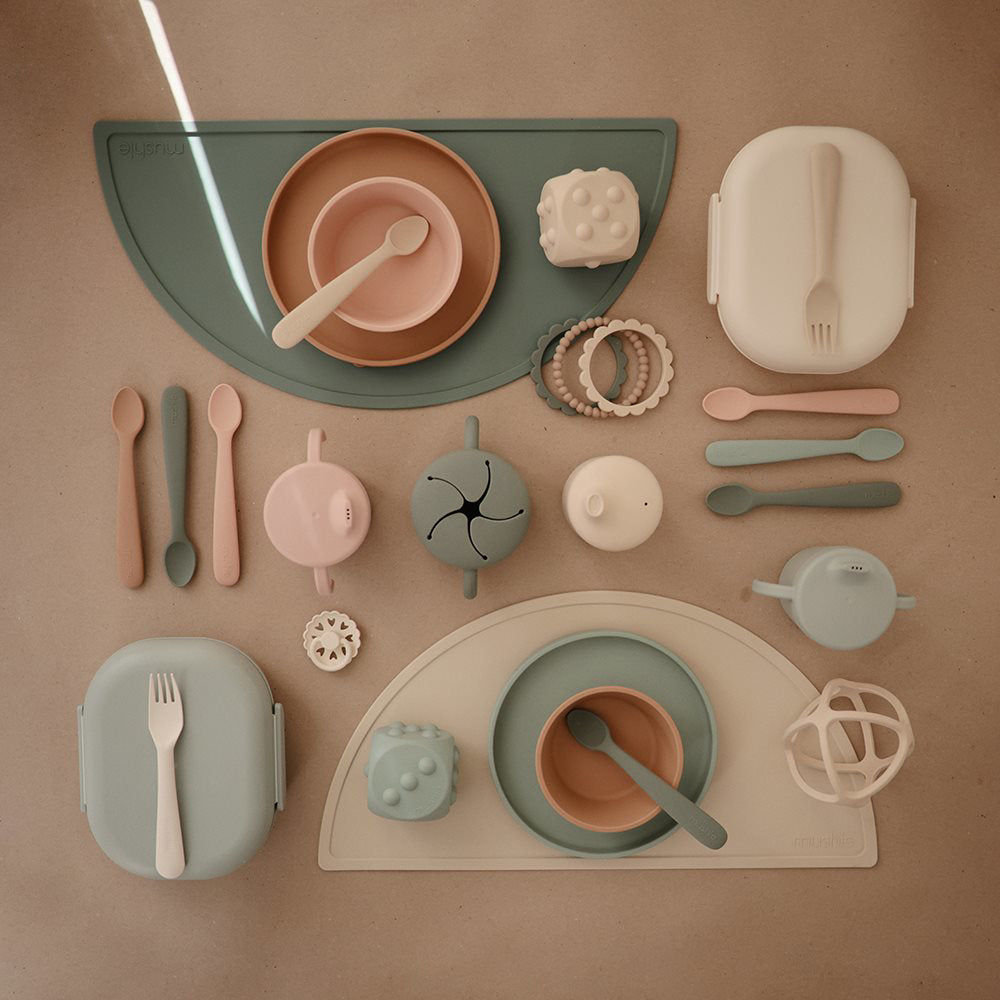 Mushie’s Lunch Box is the perfect box for meals on the go. The divider will separate the different kinds of food and store it safely until mealtime with the built-in compartments and the tightly sealed lid. Inside the box you will find a fork and a spoon to help the child with the eating.