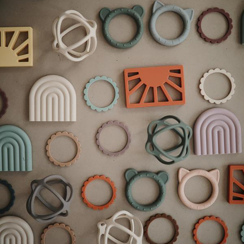 Help soothe your baby's irritated gums with our line of ball teethers. Made from 100% non-toxic, food-grade silicone, and designed to be easy to grasp by tiny fingers, our teether balls are safe for your baby to use. Their geometric design and sophisticated colors make them a stylish addition to your home.
