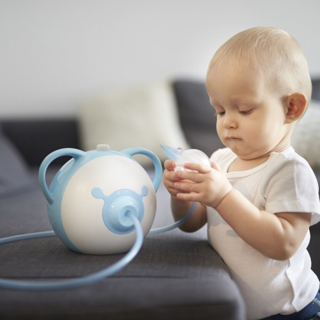 Your favorite electric nasal aspirator is now available in an improved version that is quieter, lighter, and easier to use. With the new convenient quick-start button, nose cleaning has never been simpler. All this for the comfort of both child and parents! The aspirator features an award-winning child-friendly design and adjustable suction power, ensuring effective cleaning that fully adapts to your child’s needs.