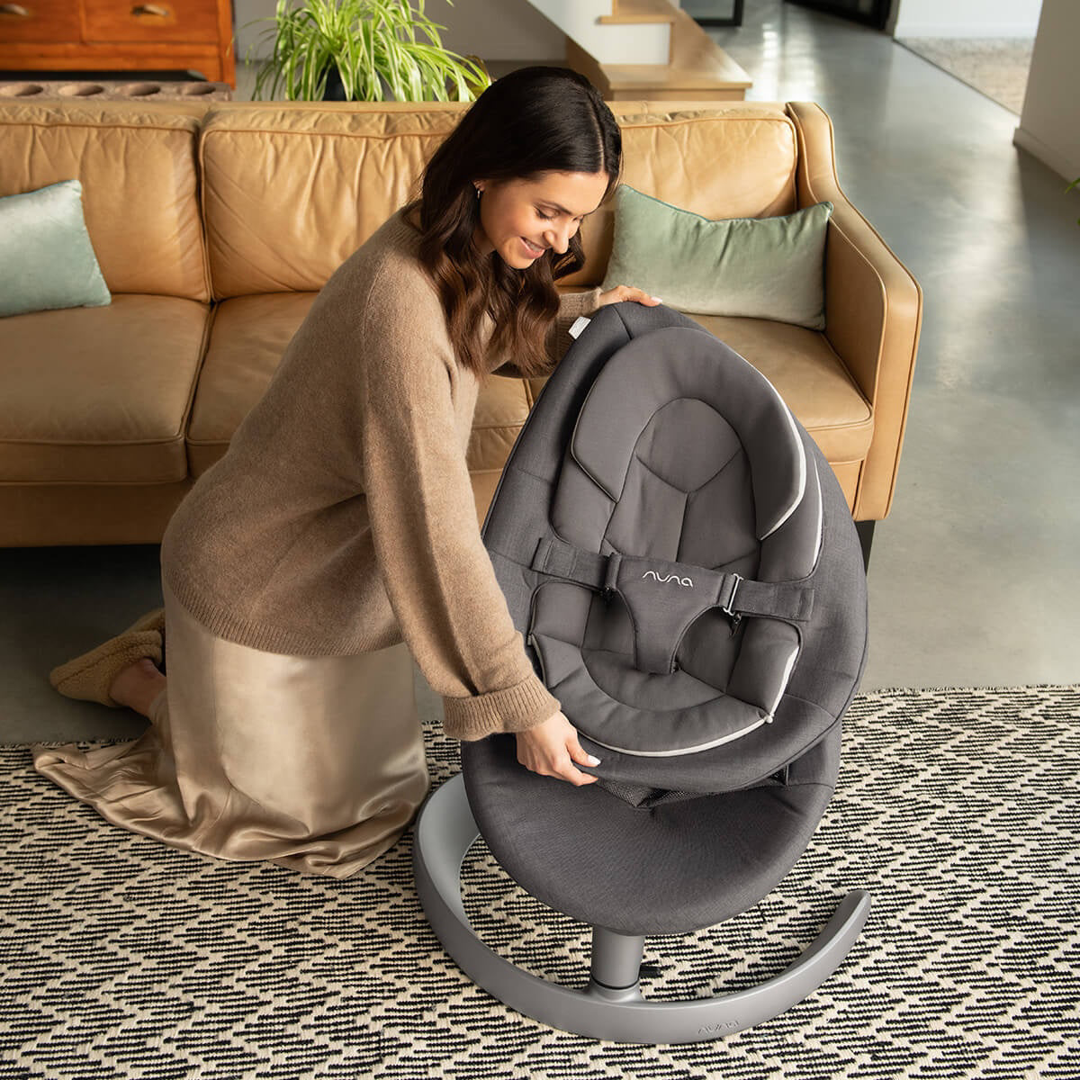 Designers of the renowned Dutch brand Nuna® were inspired by the beautiful sight in nature: a leaf on a tree detaching and gently floating to the ground. The friendly organic shape of the padded recliner made of certified organic GOTS™ cotton and its quiet operation provide the child with comfort and warmth during play, rest, and sleep. The Nuna® Leaf™ Grow baby swing features a removable washable cover. When not in use, it can be compactly folded flat. The Nuna® Leaf™ Grow baby swing has a Greenguard Gold certification, confirming that the product meets high chemical emission standards, contributing to a healthier environment.