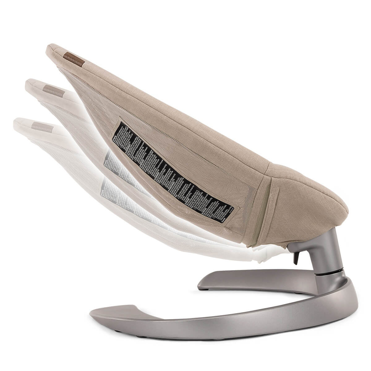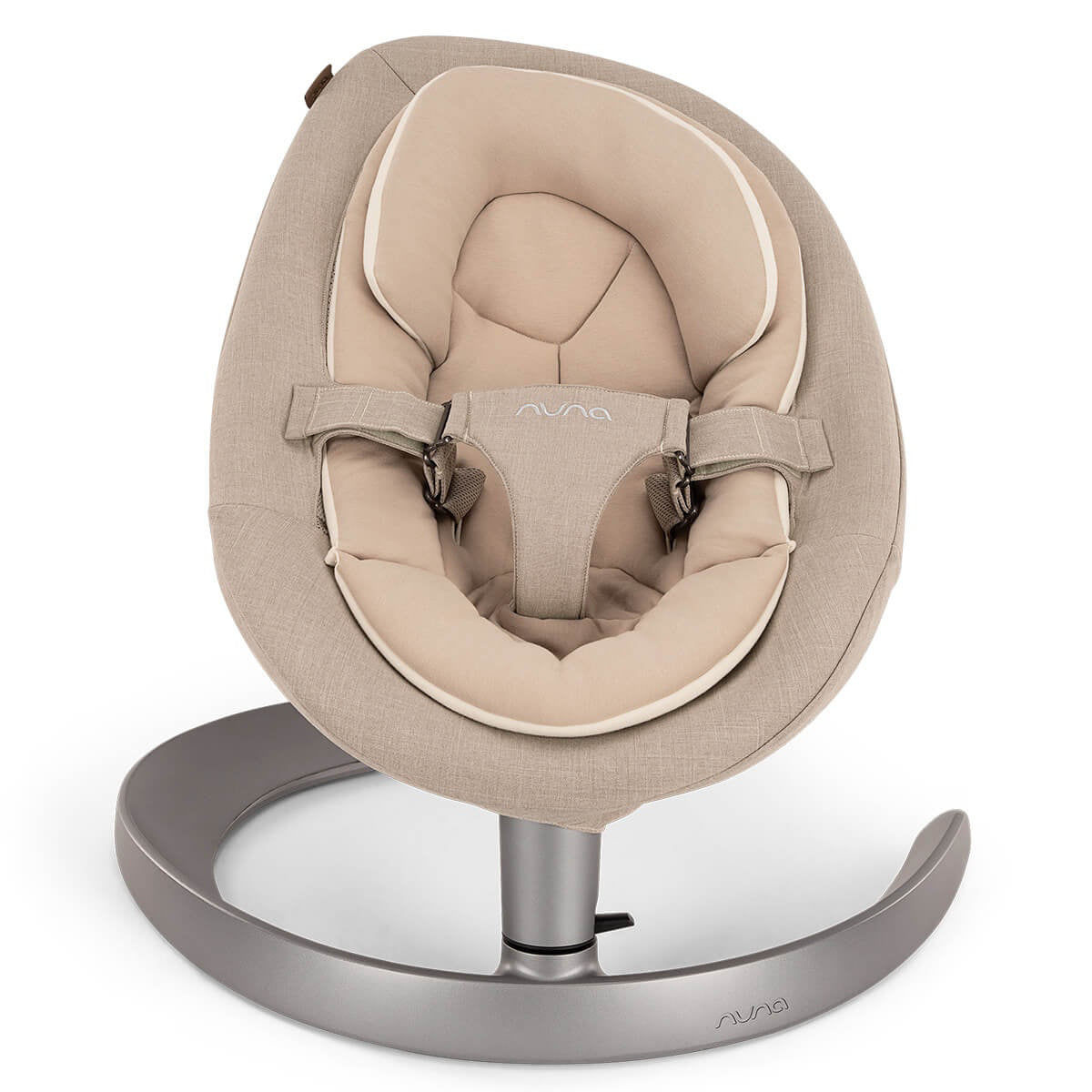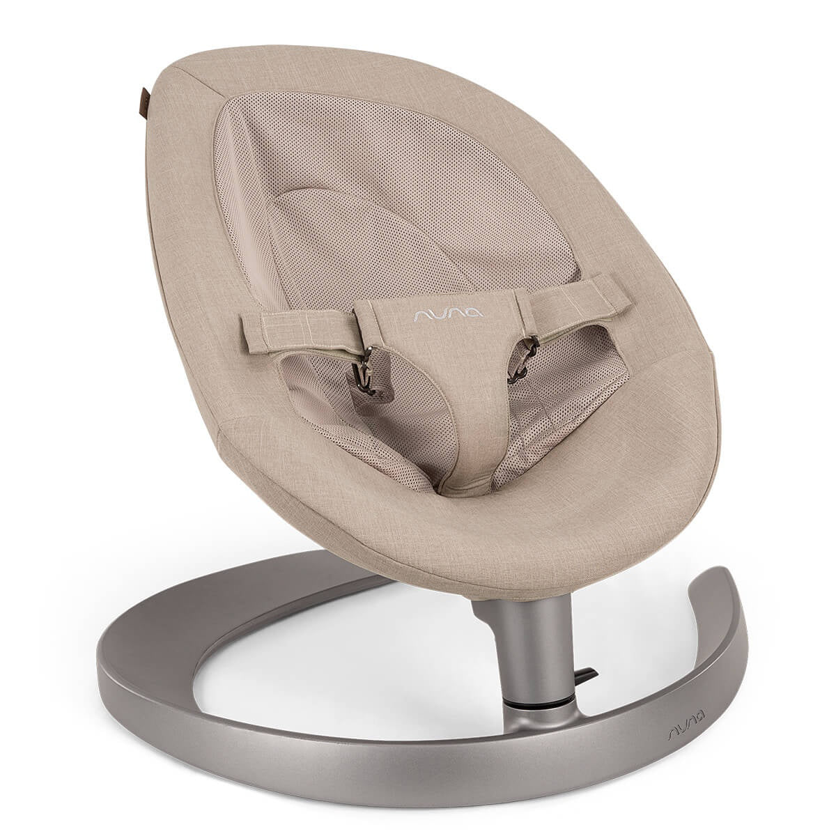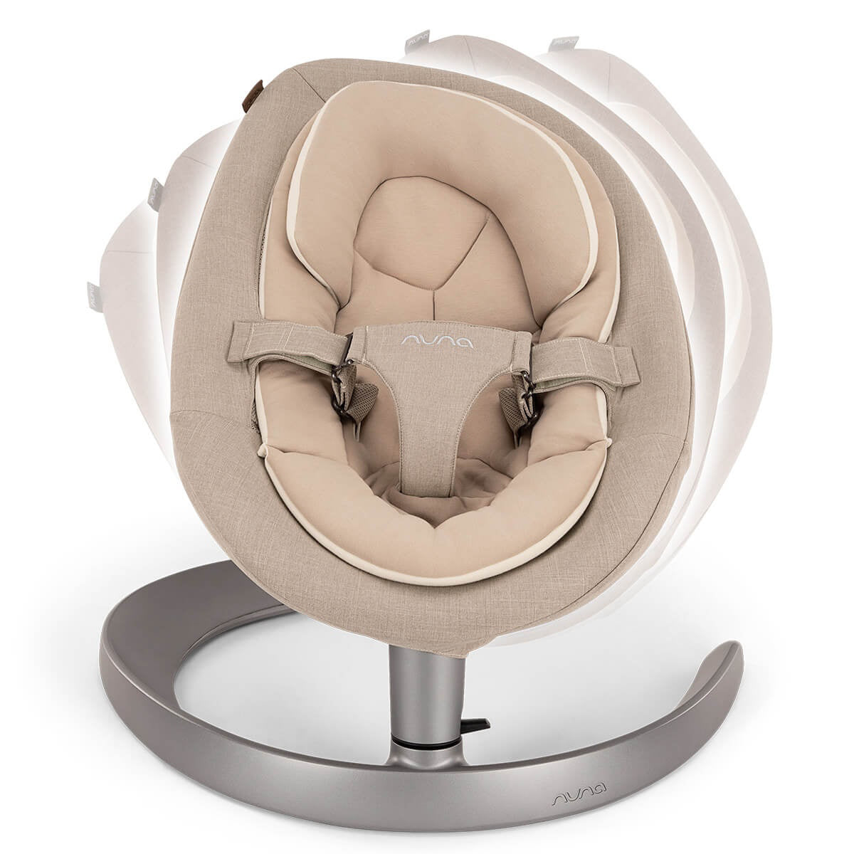 With a gentle push, the quiet operation of the seat is activated. The Nuna® Leaf™ Grow swing operates silently for approximately 2 minutes with just one gentle push. This baby swing does not require electric power or batteries to operate. It mimics the movement of a leaf floating gently to the ground, providing the child with a sense of security, comfort, and calmness. A button at the base of the swing frame allows you to lock the swinging motion, making the Nuna® Leaf™ Grow suitable as the baby's first feeding chair when the baby cannot sit independently.