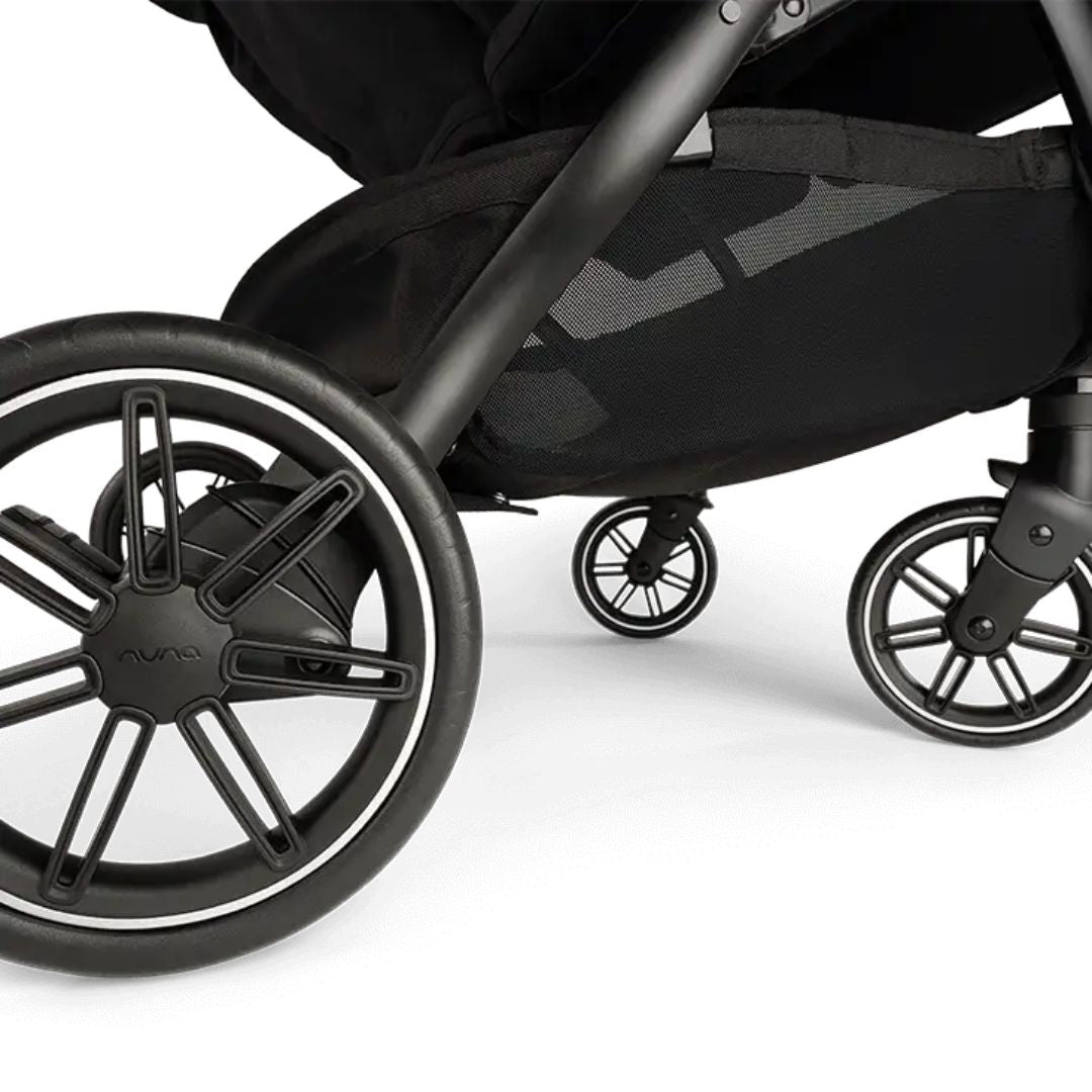 The one-hand fold system makes the Nuna® TRVL™ Dubl incredibly easy to pack away. Weighing only 10.8 kg, it’s one of the lightest twin strollers available. Features:
