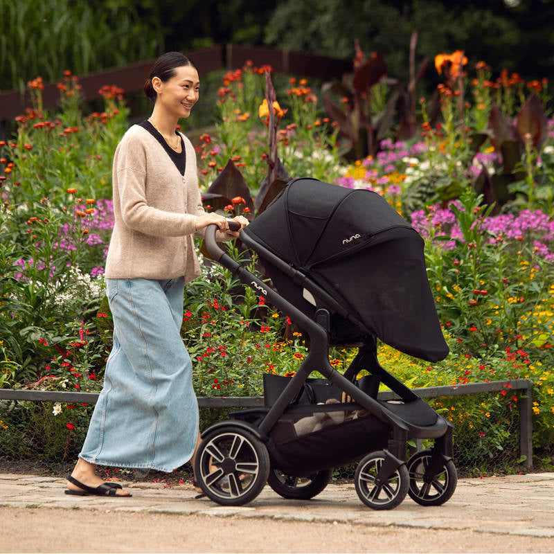 The highly capable Nuna® Demi™ Next stroller with advanced Dual suspension™ is suitable for various terrains. The advanced suspension system and larger, durable foam-filled wheels provide a smooth and safe journey for babies and toddlers, while parents enjoy effortless maneuverability. Parents also appreciate the easy folding mechanism, quick foot-activated brake system, refined height-adjustable leatherette handlebar, and intuitive handling of stroller functions. The spacious and removable shopping basket at the base of the stroller simplifies every shopping trip, with a capacity of up to 10 kg. Nuna® Demi™ Next also features practical additions like the MagneTech Secure Snap™ – an automatic magnetic buckle that makes securing your child in the stroller seat easier.
