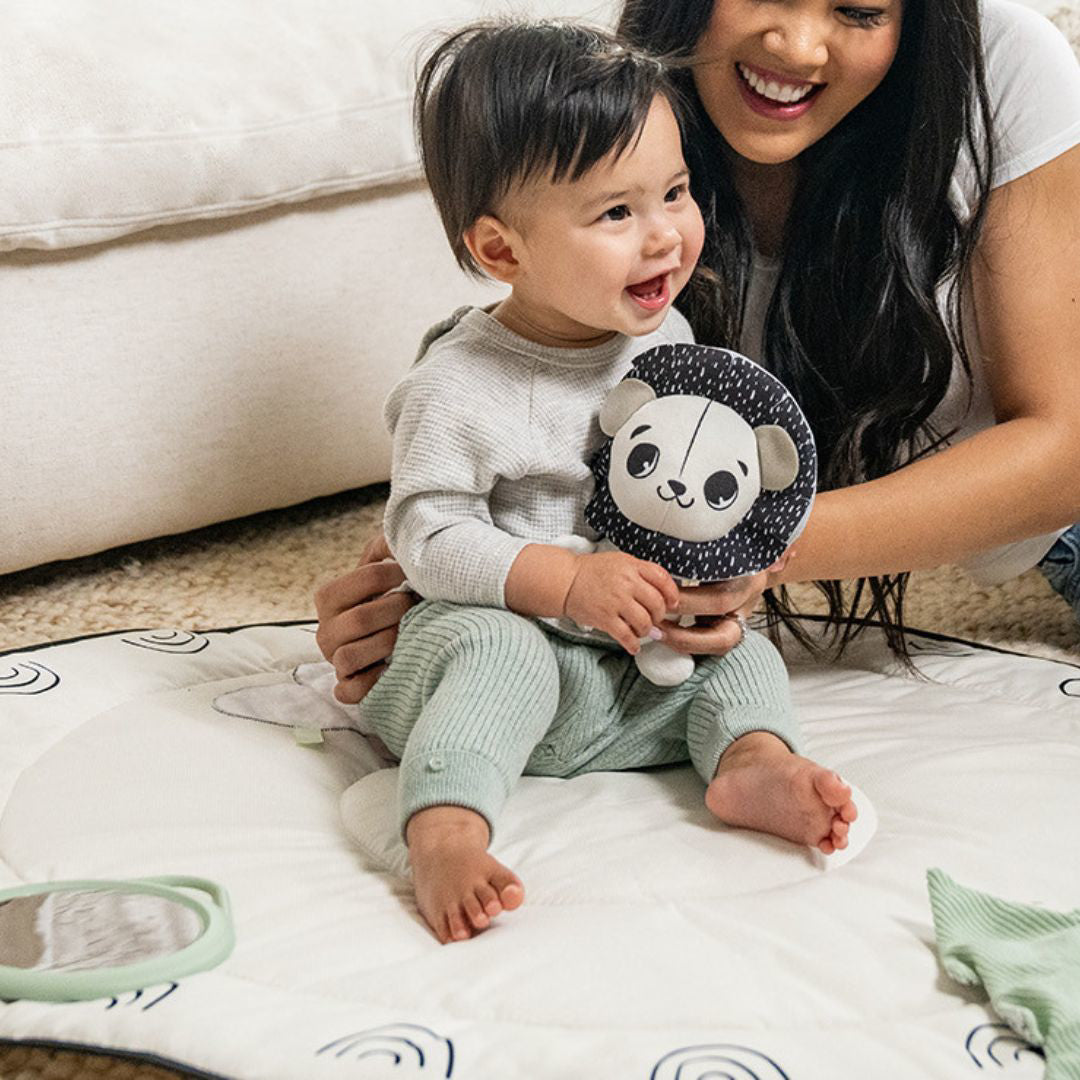 An elegant playmat with a contrasting black and white design offers 20 different activities that will keep your little one entertained. It stimulates hearing, sight, and touch and helps develop motor skills. Your baby will have fun with the lion, mirror, soft book, and many other activities, ensuring hours of fun and learning.