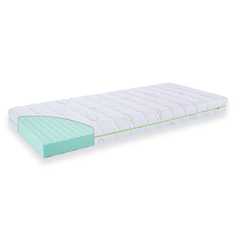 The unique sleep safety multifunctional cover consists of 32 % TENCEL™ and 68 % polyester. Quilted with cuddly fleece, to produce a soft lying surface for your baby. In addition to the integrated wetness protection function, the mattress cover contains nature fibre TENCEL™ which prevents sweating.