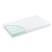 Vzmetnica je sestavljena iz fine mehke pene. Prevleka vzmetnice je iz 100% bombaža ter je dodatno prešita s pralnim flisom narejenim iz 100% poliestera. Prevleka je iz pralnega vlakna, ki je idealno za dojenčke z alergijami. Bombaž je eden najbolj znanih in najbolj razširjenih naravnih materialov. Zato je še posebej primeren za uporabo kot prevleka za vzmetnice.