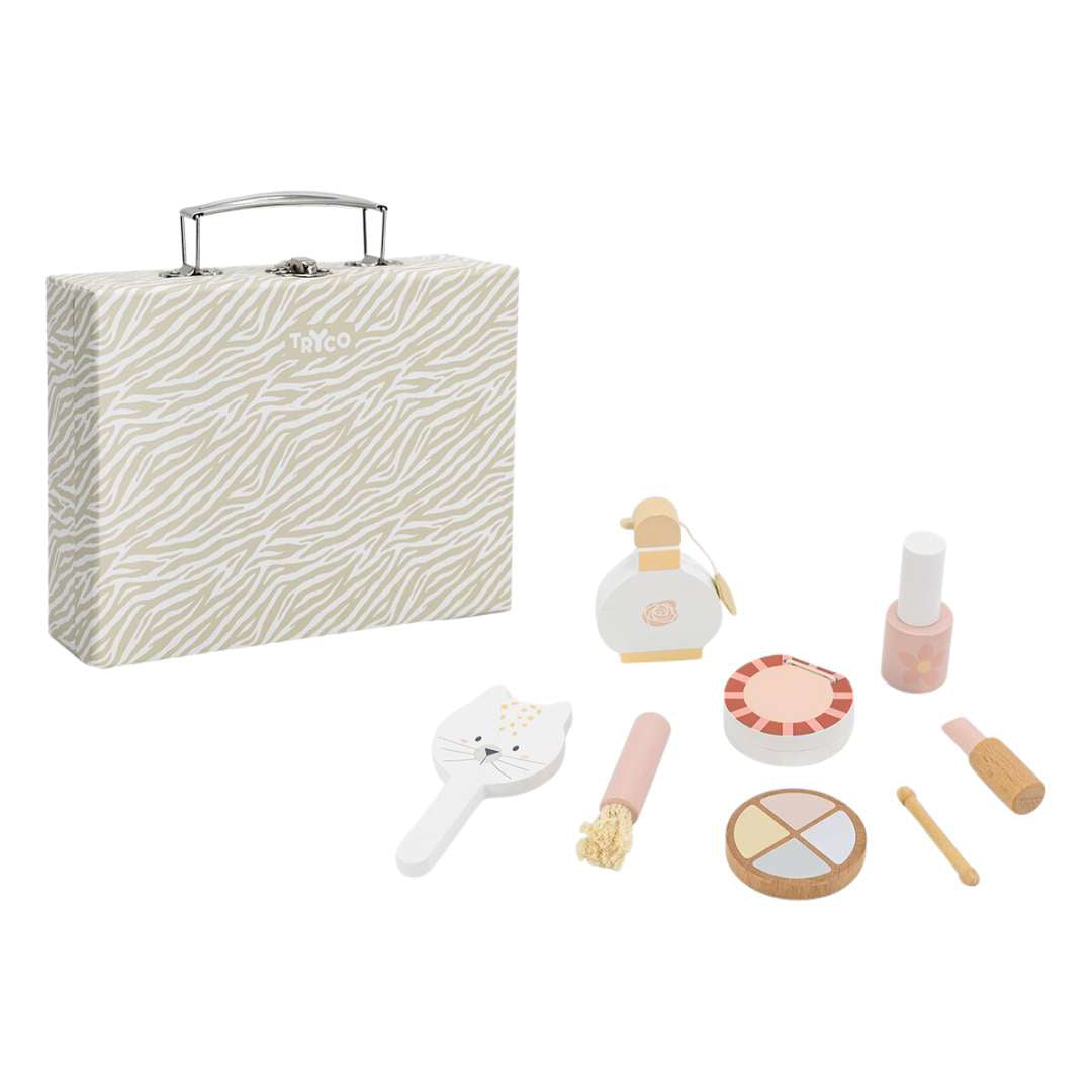 The Tryco® wooden makeup set includes everything children need for creative pretend play. All pieces are made from high-quality wood and are safe for play. Children can neatly store all items in the elegant case and take it anywhere they like, making it perfect for fun both at home or on the go.