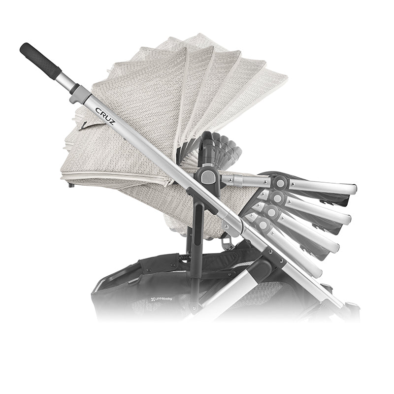 The CRUZ one-step fold is easy and intuitive. The stroller stands on its own when folded and can be folded with or without the Toddler Seat attached.