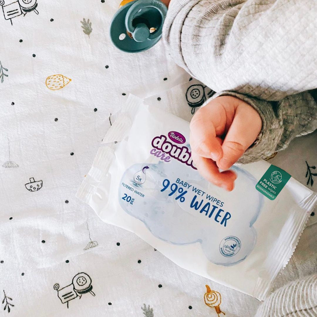 Mini moisturizing water care wipes are convenient for on the go, as they are small and so suitable for any bag for the car. Like larger packs, they consist of 99% water and a gentle lotion and are therefore suitable for use from the first day of the baby.