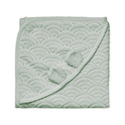 Une serviette de bain douce, luxueuse et épaisse pour bébé, tissée en jacquard selon le motif classique des vagues Cam Cam. La serviette a une capuche confortable et est parfaite pour se blottir après un bain chaud.