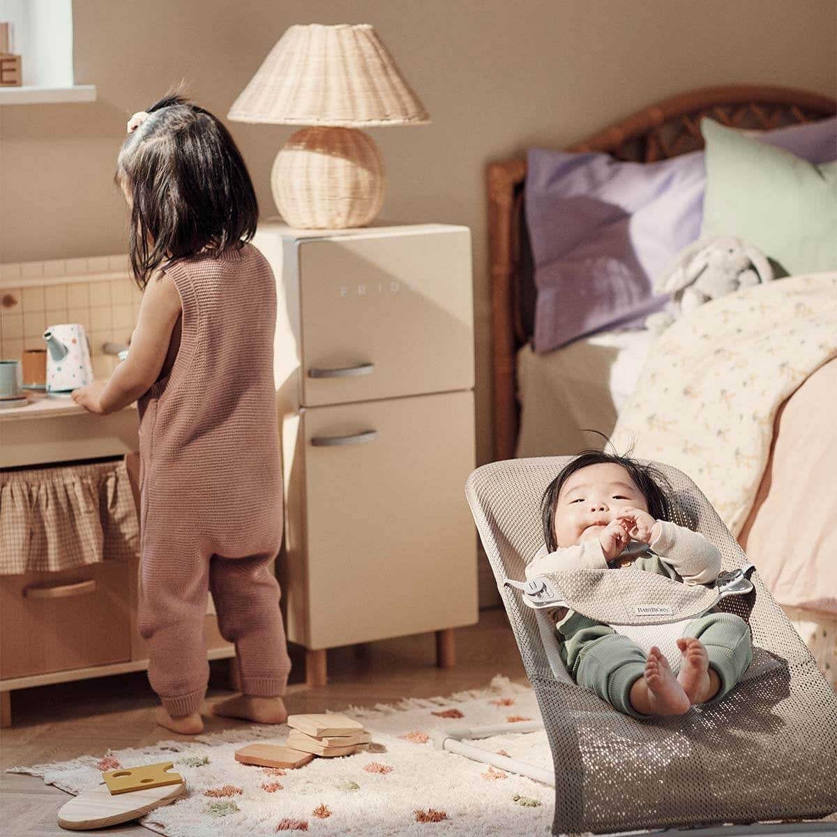 Ležaljka Bliss bit će udobno mjesto za odmor vaše bebe ili spavanje u vašoj blizini dok vi kuhate ili ste pod tušem. Materijali su izrađeni posebno za bebe a čisti pamuk je jednako udoban i mekan kao mamina pamučna majica, posebno nježan za osjetljivu bebinu kožu. Ležaljka se lagano njiše dok vaše dijete udara nogama i maše rukama. Bez struje ili baterija, BabyBjörn Bliss pokreće čista zabava! Igranje u naslonu BabyBjörn Bliss također pomaže vašoj bebi da razvije motoričke sposobnosti.