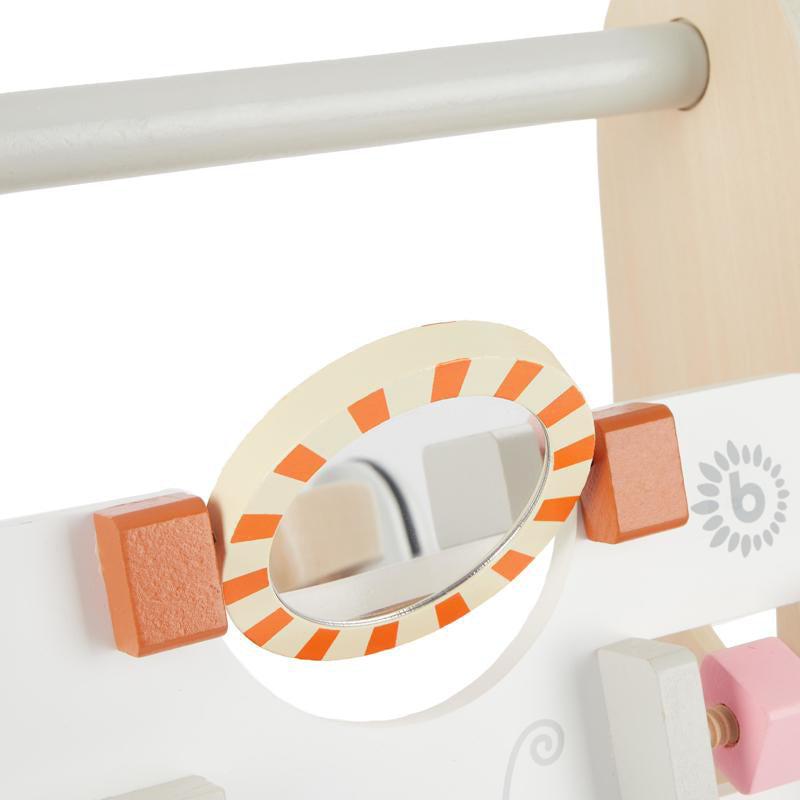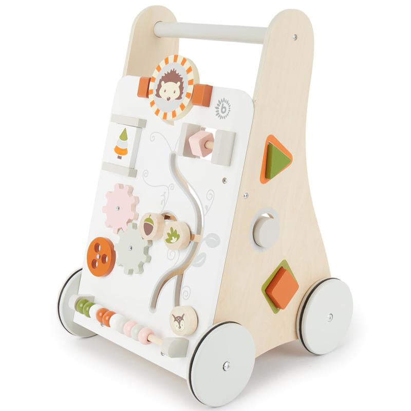 Ova višenamjenska drvena guralica savršen je izbor za znatiželjne mališane koji su spremni napraviti prve korake i istovremeno istraživati svijet oko sebe. Stabilna konstrukcija pomaže pri učenju hodanja, dok razne motoričke i interaktivne aktivnosti potiču razvoj koordinacije i motorike.